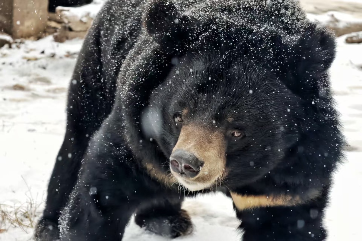 黑熊如平日般憨态可掬,一身厚实的黑毛上落满雪花,它们全然不顾漫天飞雪,只顾着在雪地里哼哧哼哧地嗅着,原来是在寻找饲养员藏起来的食物。