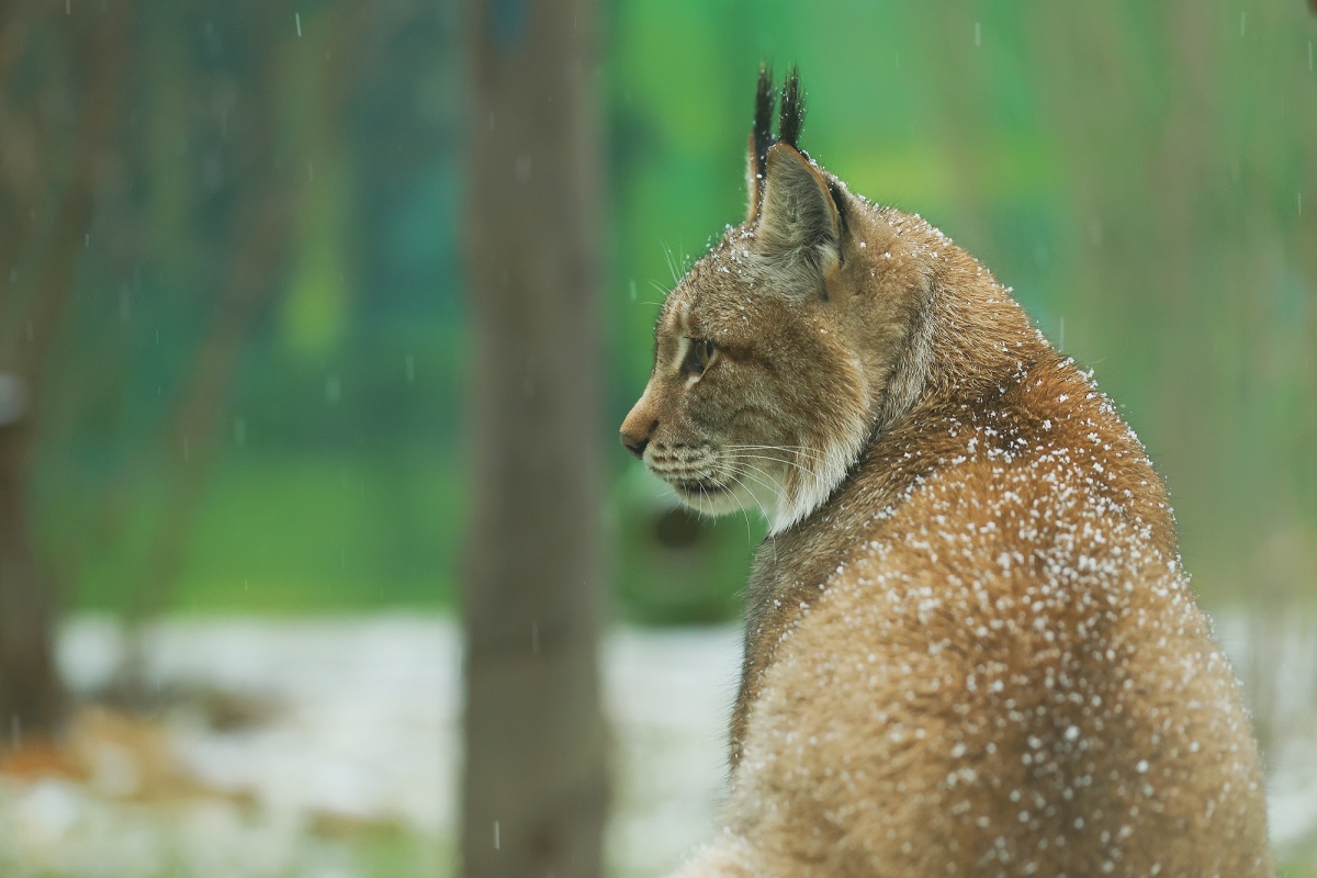 本就喜欢寒冷的猞猁,雪花飘到它的鼻尖,它只是微微抽动了一下鼻子,连眼皮都没抬,仿佛这漫天风雪,都只是它冬日暖阳里的背景板。