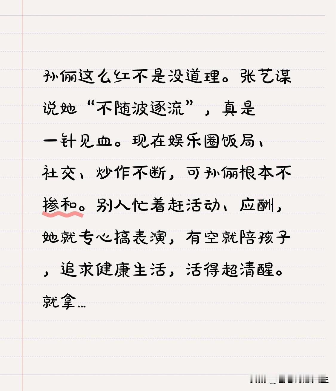 孙俪这么红不是没道理。张艺谋说她“不随波逐流”,真是一针见血。现在娱乐圈饭局、社交、炒作不断,可孙俪根本不掺和。别人忙着赶活动、应酬,她就专心搞表演,有空就陪孩子,追求健康生活,活得超清醒。 就拿《甄嬛传》来说,这么多年过去,它还是宫斗剧天花板,孙俪演的甄嬛更是经典。换作别人,肯定借着热度猛接戏、上综艺,她却稳得住,按自己的节奏选剧本,注重生活品质,事业家庭两不误。在这追求“合群”的圈子里,她坚持自我,就是一股难得的清流,能一直红下去太正常了。 孙俪演技派代表 孙俪颜值 孙俪 明星 🌹🌹🌹🌹🌹🌹🌹🌹🌹