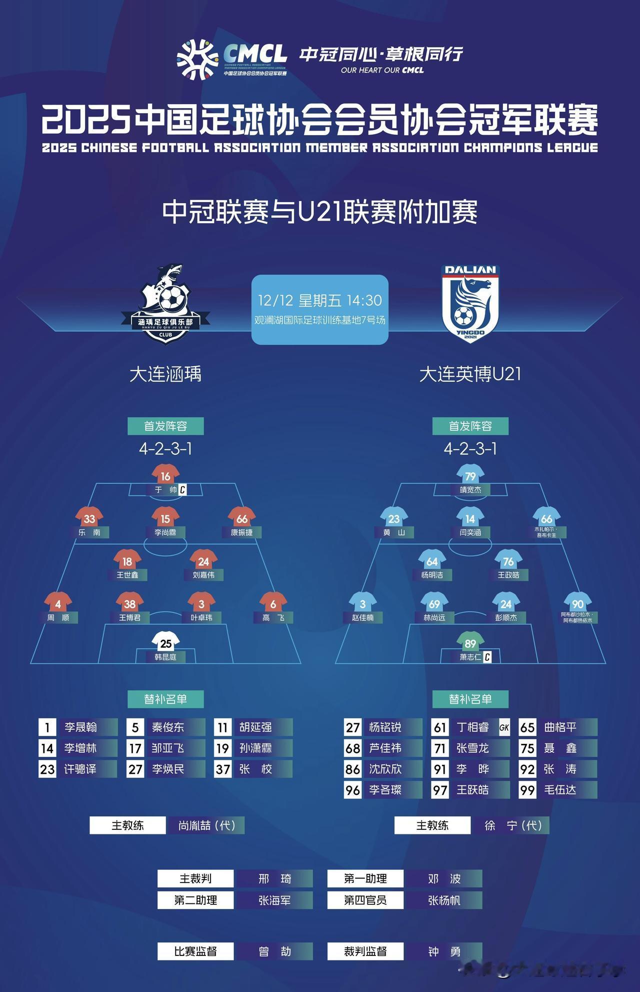 大连英博U21冲乙成功,主教练周挺前往国家队报道。 在今天下午进行的冲乙附加赛中,大连英博U21队2-0大连涵禹,获得2026赛季中乙资格,明年大连将有四支职业球队。 双方上半场均无建树0-0战平,比赛第50分钟,黄山在大禁区线前拿球,晃过防守队员将球传至小禁区前,靖宽杰停球过人一气呵成低射破门,大连涵瑀0-1大连英博U21(图2)。 第80分钟,黄山大禁区弧顶处拿球,经过调整后一脚兜射皮球应声入网,大连涵瑀0-2大连英博U21(图3)。 最终大连英博U21凭借黄山的一传一射和靖宽杰的进球,2-0击败了大连涵禹,获得明年中乙联赛参赛资格。 比赛在第68分钟出现争议,大连涵禹打入一球(图4),边裁举旗,示意张校越位在先,进球无效。通过转播画面并没有看出来这个球有越位的嫌疑,但有球迷说是在越位位置回接了。 第81分钟,大连涵禹队高中锋张校被直红罚下,涵瑀队对此强烈不满,比赛一度出现中断。 个人觉得真没有必要这样,都是大连的球队,况且涵禹胸前还写着统顺呢,让外人见笑多不好。 另外,本场比赛大连英博U21主教练周挺没有出现在教练席上,据了解,周挺将前往国家队报到,成为教练组成员之一。恭喜大连英博U21恭喜周挺的同时,也希望大连涵禹明年再接再厉,继续加油! 2026赛季除了大连涵禹之外,大连将有8支球队征战四级联赛,他们分别是↓ ·中超:大连英博 ·中甲:大连鲲城 ·中乙:大连可为,大连英博U21 ·中冠:大连统顺集团、大连桐哲、大连传易文化、大连北看台 加油大连足球,加油大连!