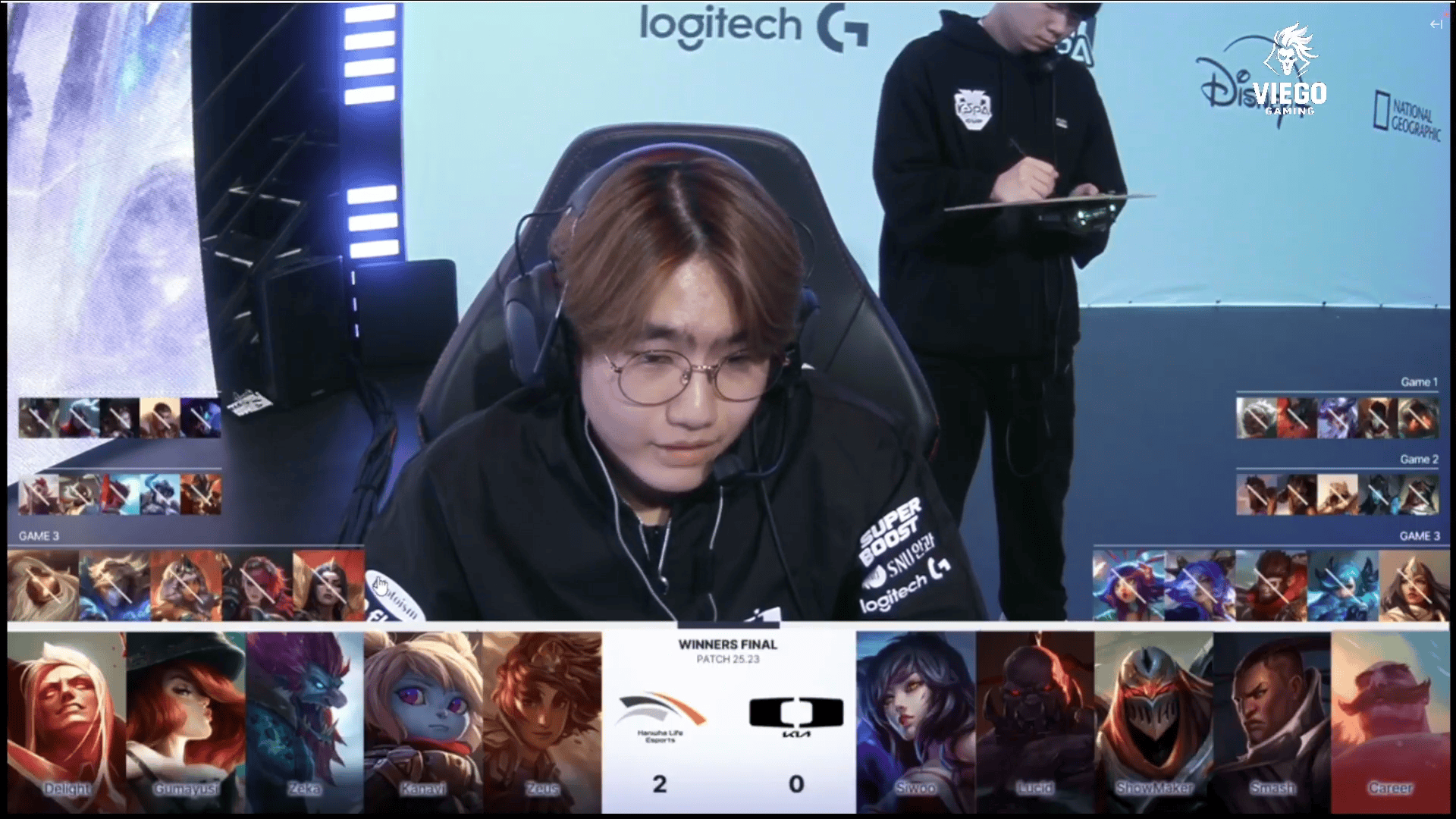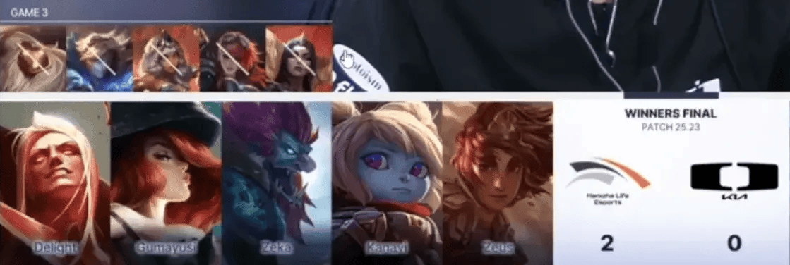 HLE选用:Zeus吸血鬼、Kanavi巨魔、Zeka岩雀、Gumayusi女枪、Delight波比