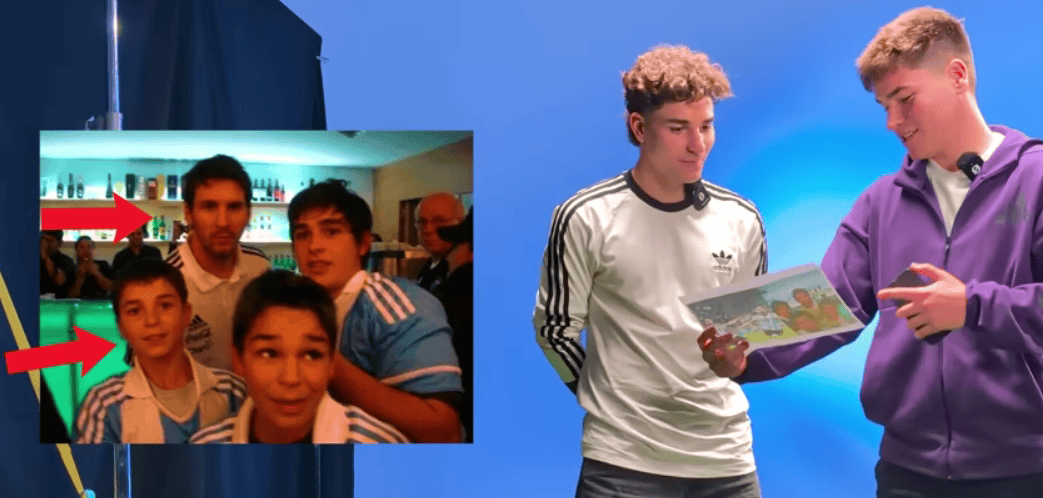 好的,然后我想给你看这张照片,是你小时候和梅西的合影,十年后,你和他一起,在世界杯上庆祝进球,认识梅西是什么样的感觉?很疯狂吧?