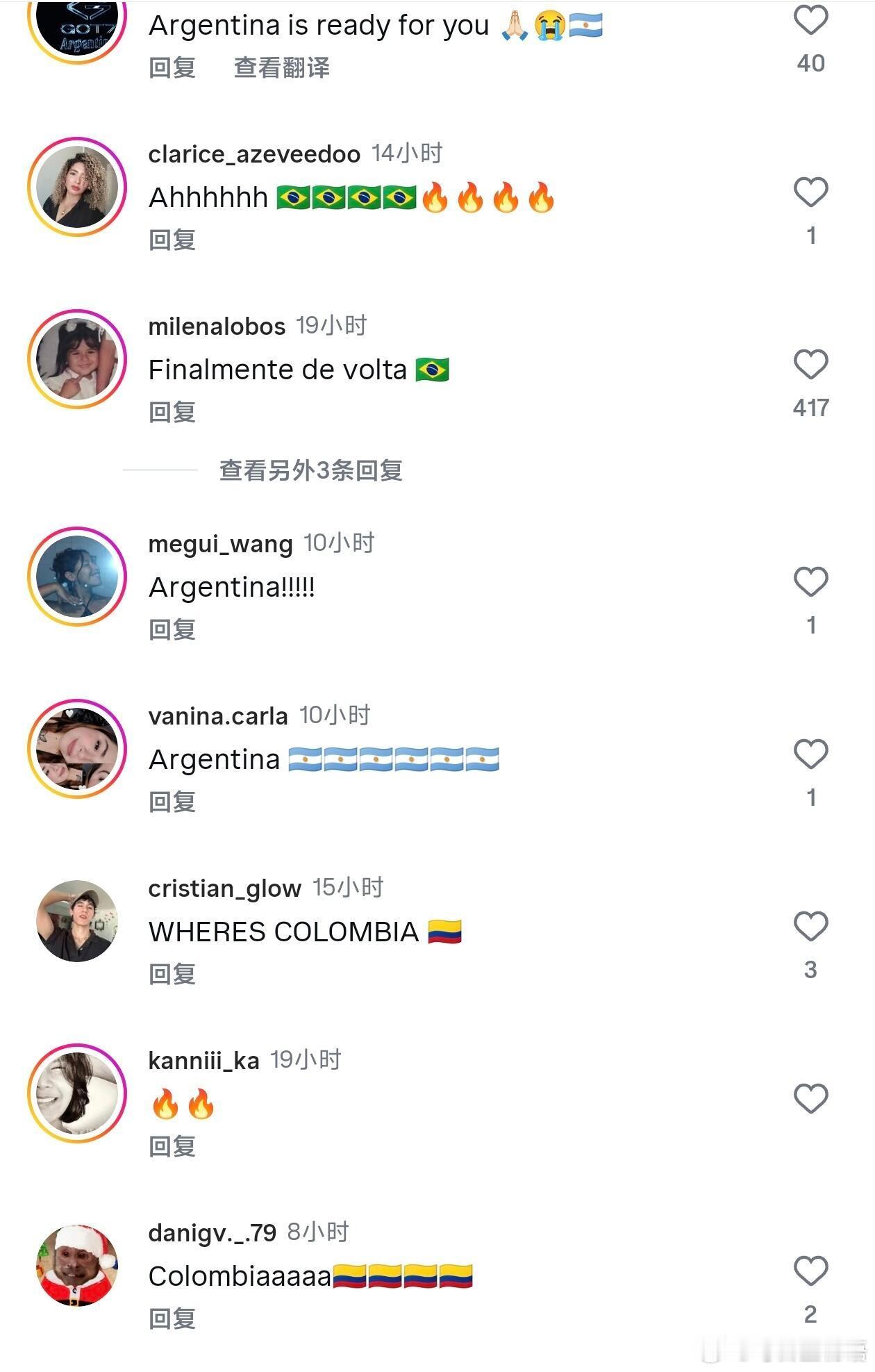 王嘉尔外网评论区被粉丝冲了 阿根廷和哥伦比亚粉丝这波行动力太强!官宣拉美4城后,他们第一时间杀到评论区刷屏求加场。美洲10站连续没排上,他们的热情直接满格外放。