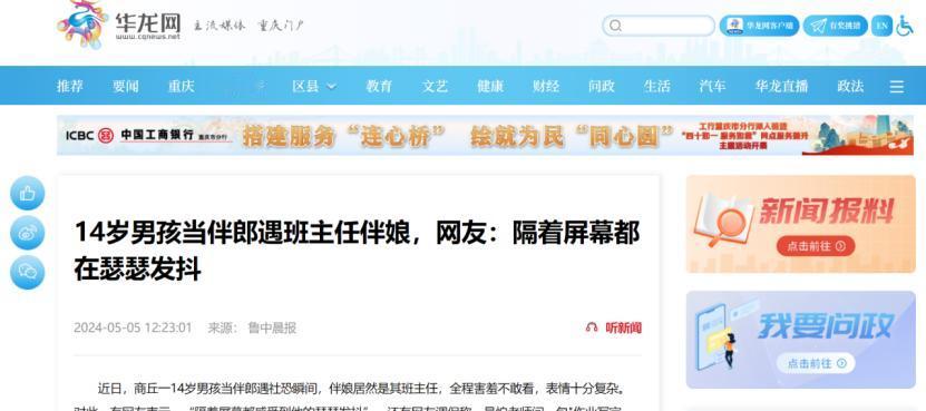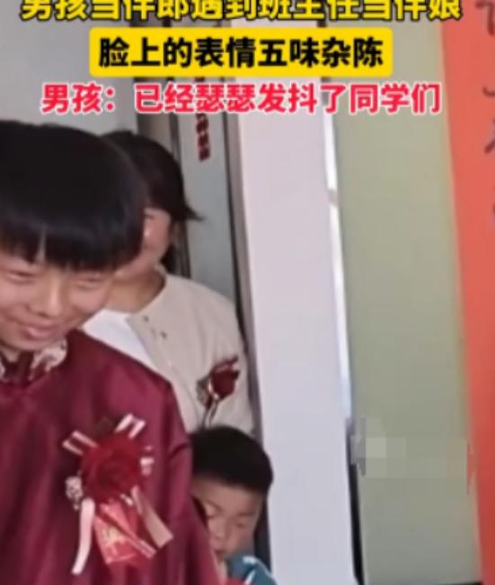 “太有缘分了!”河南一14岁男孩在五一期间凑人数当伴郎,可没想到的是,伴娘居然是自己的班主任,这下子,男孩害羞的脸都不敢抬了,生怕和班主任对视。 穿上伴郎服时,14岁的小李还在跟姐姐赌气。 本来想着五一假期能安心打游戏,结果被姐姐一句“不帮忙就告诉爸妈你偷偷玩手机”拿捏得死死的。 他耷拉着脑袋,跟着迎亲队伍往前走,心里把这场婚礼吐槽了八百遍,早知道伴郎这么麻烦,还不如在家写作业。 直到看见伴娘群的那一刻,小李感觉全身的血都冲上了头。 人群里那个穿粉色伴娘服、正笑着接过捧花的人,不就是每天在课堂上盯着他背课文的班主任吗?平时总穿深色西装、戴黑框眼镜的老师,今天化着淡妆,头发卷成温柔的波浪,连说话声音都比课堂上软了三分。 小李下意识往后缩了缩,恨不得把自己藏进旁边的礼炮筒里。 班主任显然也认出了他,眼神扫过来时顿了一下,随即露出个浅浅的笑,还朝他挥了挥手。 小李僵在原地,手都不知道往哪放,只能僵硬地低下头,假装研究自己锃亮的皮鞋。 整场婚礼,他像个提线木偶,既怕老师突然走过来问“上周的作文为什么没交”,又忍不住偷偷瞄她和其他伴娘说笑的样子,原来老师被起哄时会脸红,笑起来眼角还有细纹,一点都不像课堂上那个“冷面判官”。 婚礼结束后,小李在日记里写:“今天才发现,王老师的伴娘服是粉色的,和她总让我们用红笔订正作业的颜色一点都不一样。” 以前他觉得老师就该是严肃的,作业本上的红叉、课堂上的提问,都带着不容置疑的威严。 可那天看到她帮新娘擦眼泪时的认真,听到她跟伴郎团开玩笑时的爽朗,心里那个“高高在上的老师”形象,突然就落了地。 这样的“破次元壁”不止发生在小李身上。 去年四川有个学生在演唱会撞见班主任举着荧光棒跟唱,当场吓得把应援牌藏到了身后;江苏还有个孩子在超市看到数学老师抢购打折鸡蛋,回家跟妈妈说“原来老师也要省钱过日子”。 这些藏在校园外的瞬间,就像一把钥匙,悄悄打开了学生心里那扇“老师只能是老师”的门。 看着小李日记里那句“原来老师也会有自己的朋友和开心事”,我觉得这种跳出课本的相遇,比任何说教都更有力量。 当学生发现老师会在婚礼上害羞、在超市里精打细算、在演唱会上疯狂,那种“权威感”就变成了“亲近感”。 就像小李后来上课回答问题时,不再盯着黑板不敢抬头,而是会自然地看向讲台,他知道,那个站在上面的人,除了是教他知识的老师,也是个会穿粉色伴娘服、会笑到弯腰的普通人。 婚礼上那身粉色伴娘服和小李低头的动作,成了这段故事里最温柔的注脚。 它没有改变师生间的身份,却让理解多了一份真实的温度。 或许教育从来都不只是课堂上的45分钟,那些藏在生活角落里的意外相遇,那些跳出角色的真实瞬间,才让师生间的联结,变得更像人与人之间的碰撞与靠近。