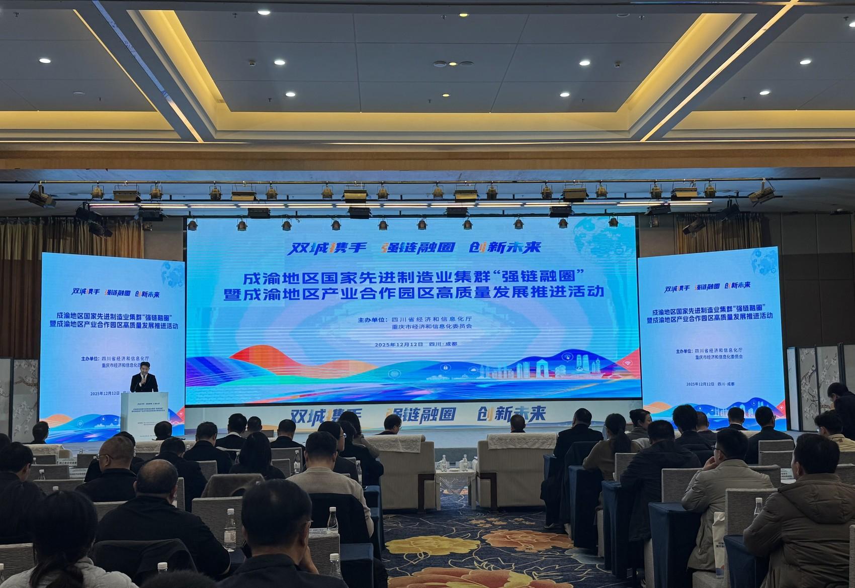 12月12日,成渝地区国家先进制造业集群“强链融圈”暨成渝地区产业合作园区高质量发展推进活动在成都举行。记者从活动上获悉,川渝两地锚定共同打造世界级先进制造业集群目标,携手共育成渝地区电子信息先进制造集群和成渝地区生物医药集群2个国家级先进制造业集群,规模总量突破2.2万亿元。