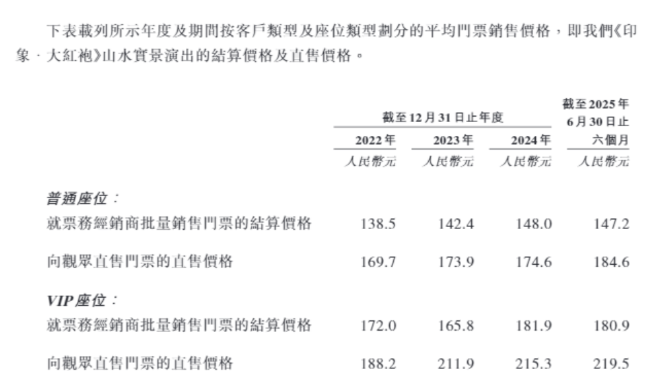招股书显示,2022年至2025年上半年,无论是向经销商批量销售门票的平均结算价格还是向观众直售门票的平均价格均明显上升。其中,普通座位的平均直售票价由2022年的169.7元涨至2025年中期的184.6元;VIP座位的平均直售票价则由188.2元涨至219.5元。