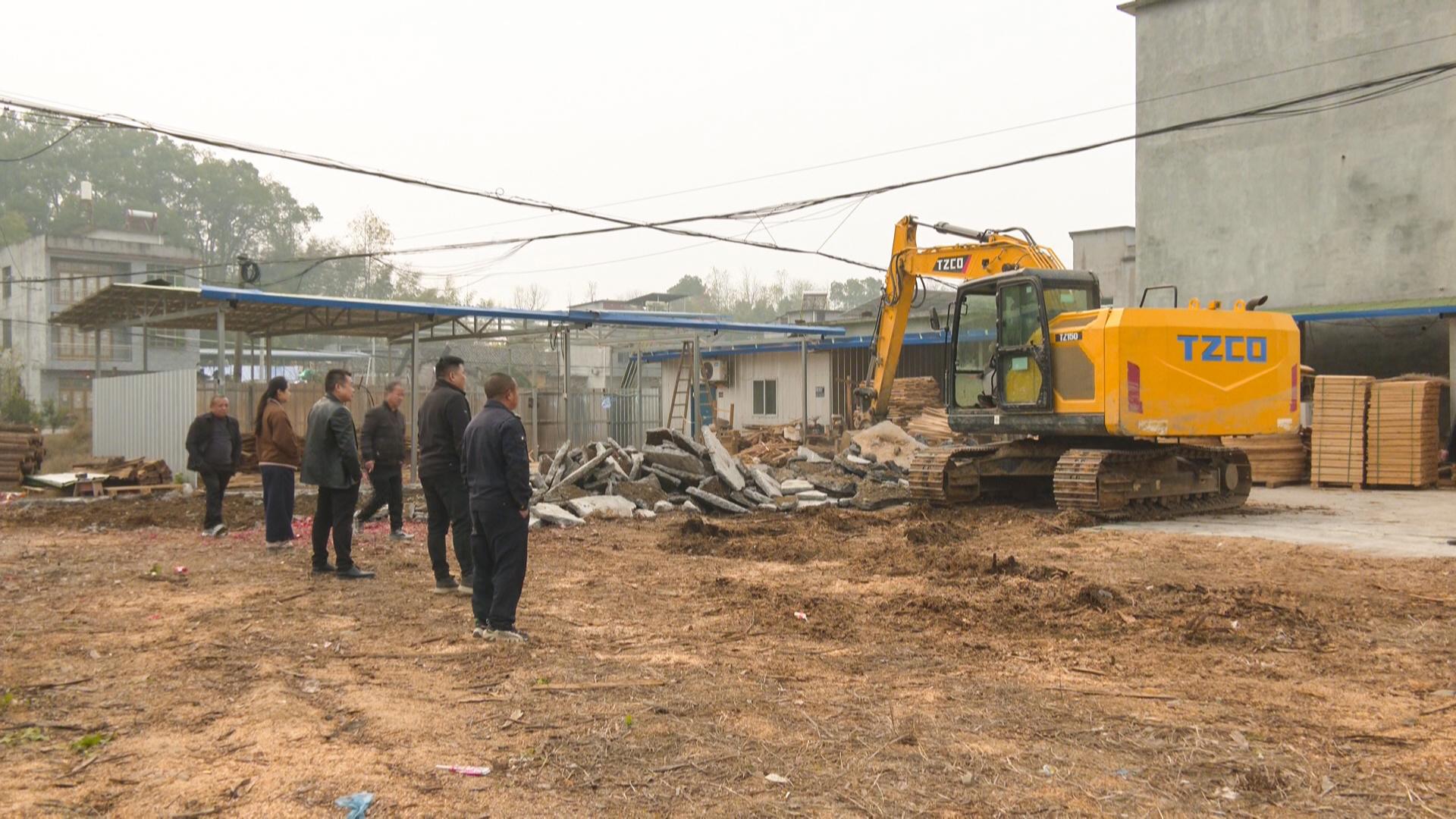 拆除现场,工作人员迅速划定安全警戒区域,向周边群众说明拆除事由及安全注意事项,耐心引导无关人员有序撤离,并对加工棚内残留物品、周边管线等进行全面排查,及时消除安全隐患。随后,大型拆除机械依规进场,采用“分步拆解、逐层清理”的方式对违法建筑实施拆除,避免机械作业对周边耕地造成二次破坏。拆除过程中,清运车辆与保洁人员同步作业,对建筑垃圾进行分类收集、即时清运,确保现场环境整洁。