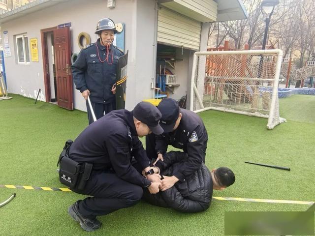 演练过程中,气氛紧张有序。面对突发情况,幼儿园立即启动应急预案,教师们迅速反应,有序引导幼儿撤离至安全区域。派出所接到报警后,迅速出动警力赶赴现场,与校园安保人员协同作战,果断将“歹徒”控制并带离,整个过程处置规范、配合顺畅,达到了预期效果。