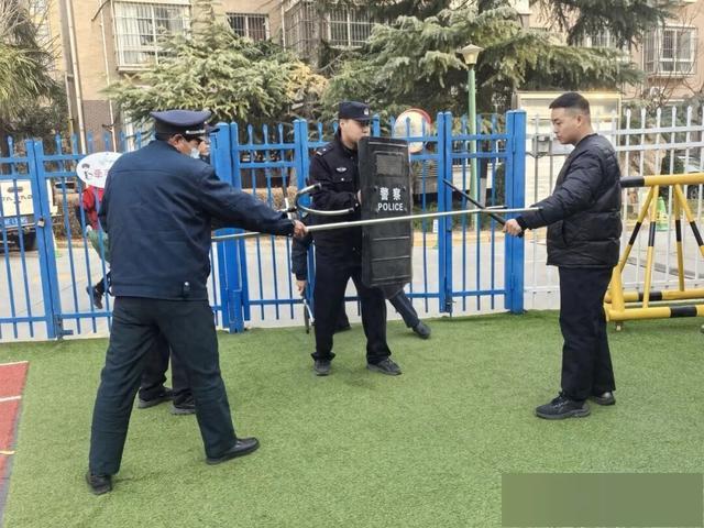 为进一步加强校园安全防范工作,切实提高中小学、幼儿园应对突发暴力事件的应急处置能力,增强广大师生安全防范意识与自救互救技能,渭南市公安局高新分局崇业路派出所积极响应“金盾护苗”专项行动号召,组织警力深入辖区幼儿园,联合校方开展了一场贴近实战的防暴应急演练。