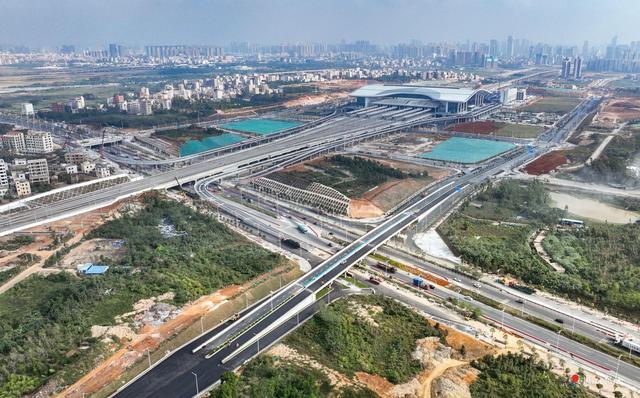 随着广湛高铁通车的日期日渐临近,广湛高铁湛江北站周边公路网建设也在紧锣密鼓推进中。12月12日,记者在现场看到,湛江北站南侧进出站通道连接线施工已基本完工,部分道路交通辅助线也已划线完毕,北侧的施工也正在有序推进。