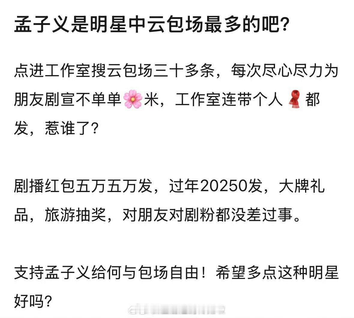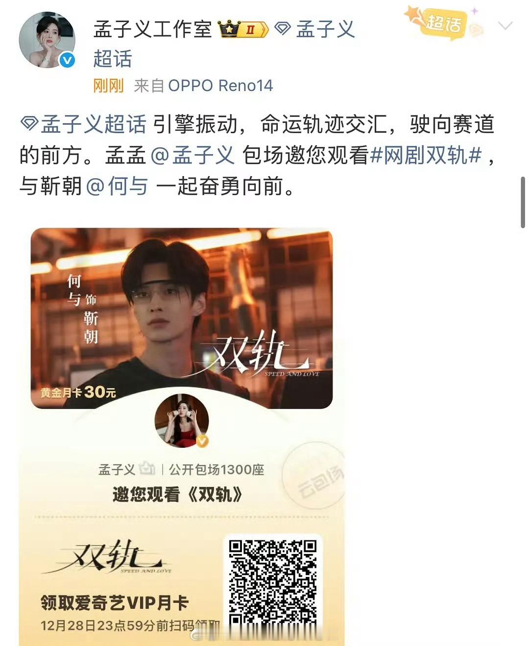 孟子义为双轨云包场支持何与之前何与给她包了1205场,两个人的《百花杀》也马上要