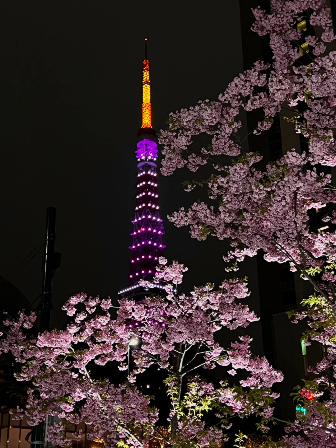 🔹晚上铁塔不同时段的灯光颜色是不一样的,可以在官网看时间表,樱花季有限定粉色哦