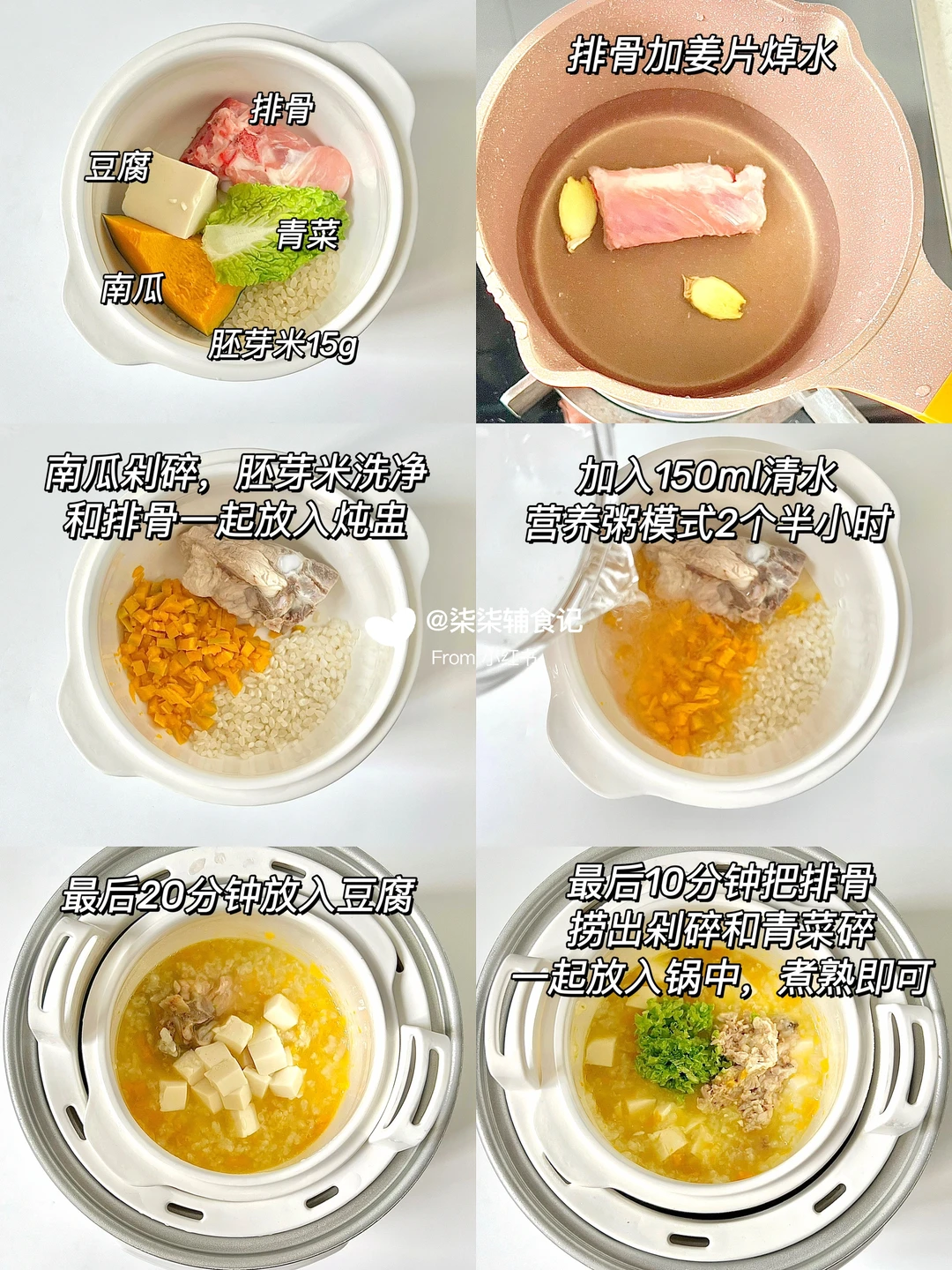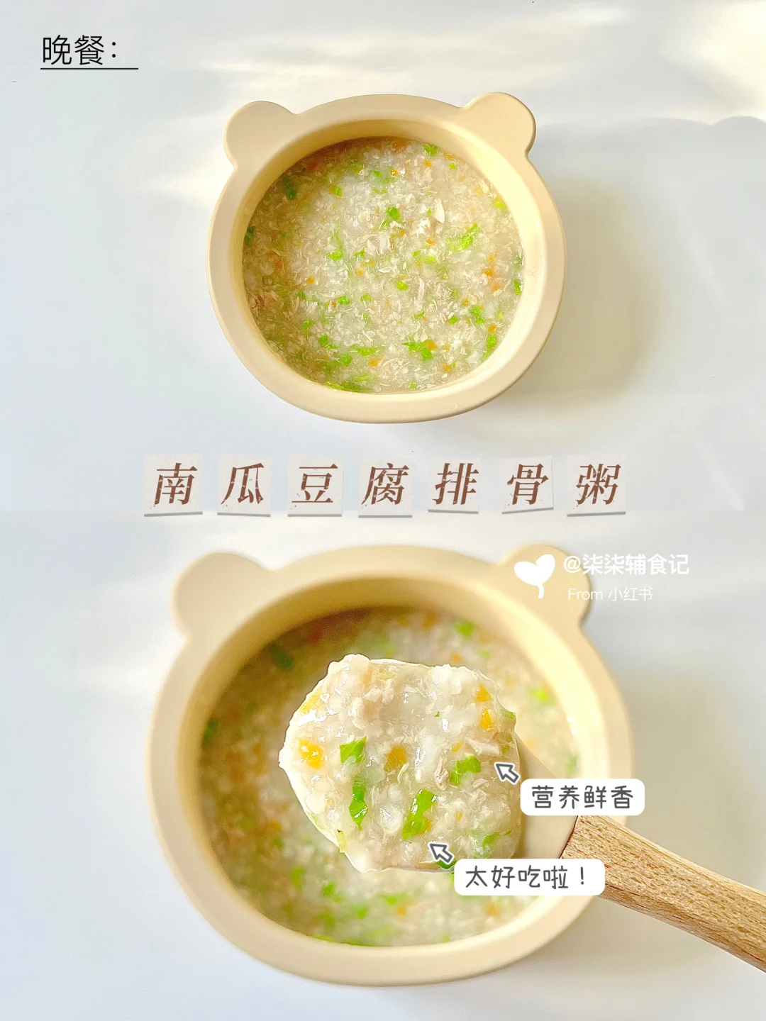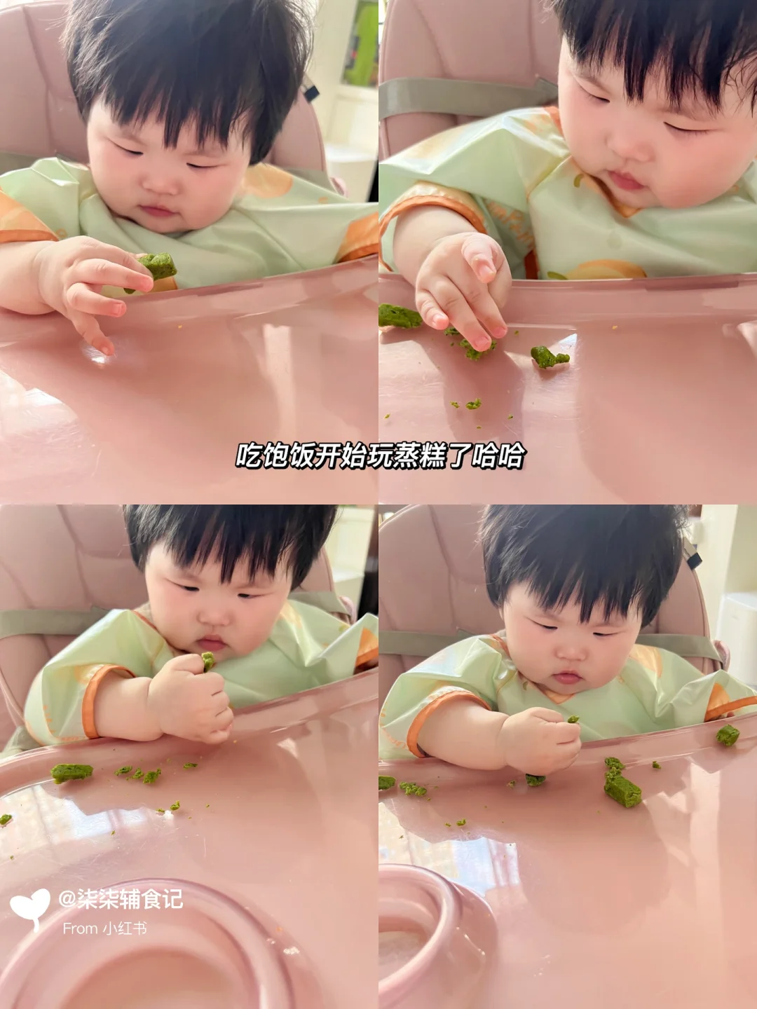 👧:9个月➕16天 ⏰:午餐11:30 🥣:紫薯小米糊 🤌:菠菜米粉蒸糕 🍽️:水果:香蕉🍌 ⏰:晚餐18:00 🥣:南瓜豆腐排骨粥 午餐吃自制小米糊和菠菜米粉蒸糕,菠菜焯完水要控一下水分,水分太多,蒸糕会很湿,比较难抓握哦。 饭后半小时吃水果香蕉🍌,吃了大概1/3根吧~[萌萌哒R] 晚餐南瓜豆腐排骨粥,太香啦,快给宝宝安排吧,柒柒很快就把一大碗都吃光光啦,很棒很棒[赞R][赞R] 柒柒今天也有在乖乖吃饭呀! ⚠️食材分量根据宝宝的食量添加。 ⚠️食材大小根据宝宝的咀嚼能力处理。