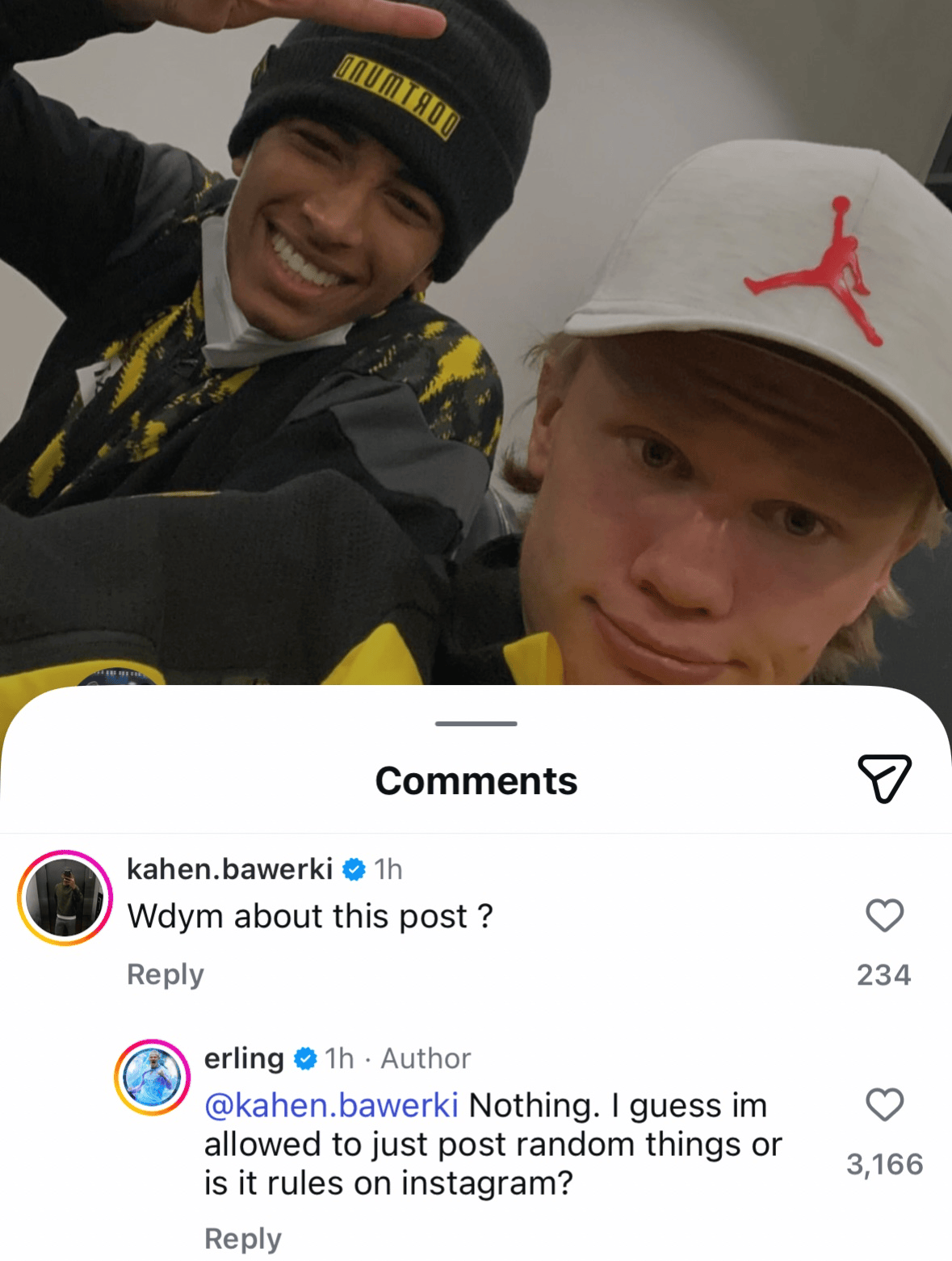 有球迷问他放一张多特蒙德时期的照片的用意(图6),他如此回复:“没什么。我想我应该可以随便发点东西吧,难道发图片还有什么规定吗?”