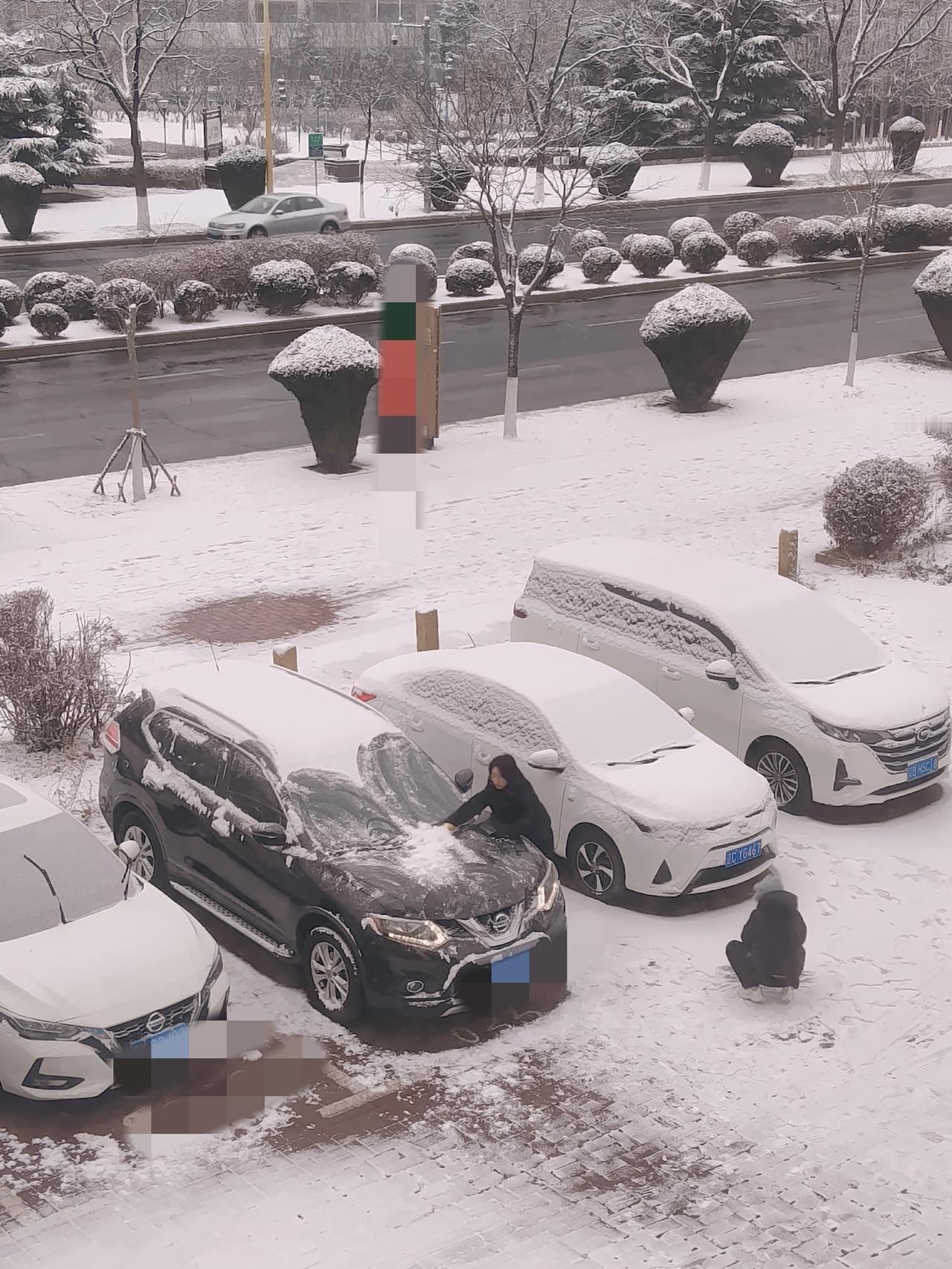 早晨出门,大地白雪皑皑,年轻妈妈要开车送孩子去学一个什么补习班,娘俩来到车前,一阵的欣喜,妈妈用手一把一把的拂去前风挡玻璃和机关盖上的积雪,她不肯、她不忍用车里的扫把、刮雪板清除车上的积雪,那一刻,她回到了童年,她和闺蜜们叽叽喳喳的在雪地里嬉戏打闹,突然间脖子就被调皮的闺蜜撒了一把雪,年轻妈妈顺手抓起了车上的一把雪扔到了儿子的脖子里,那一刻时间模糊穿越,一种本能的兴奋,她分辨不出面前的人是谁? 儿子马上蹲到地上团起了一个雪球,反击到妈妈的脸上,娘俩在一个下雪的早晨,纷纷扬扬爆发了一场雪地母子反击战,爸爸在楼上的窗户上观战了一会儿,后悔今天早晨不是他送儿子去学习,看到这娘俩忘情的游戏,眼瞅着娘俩忘记了身份,而且妈妈逐渐的处于劣势,爸爸着急的从五楼探出身子喊道:我说大姐呀,别玩了,上学要迟到了。 娘俩喘着粗气收手了,弹了弹身上帽子上的雪,然后进到车里打开雨刷把前风挡玻璃彻底的刷干净,出发上学去了。 南方的妈咪们羡慕北方的妈咪雪天送孩子上学不?羡慕不?