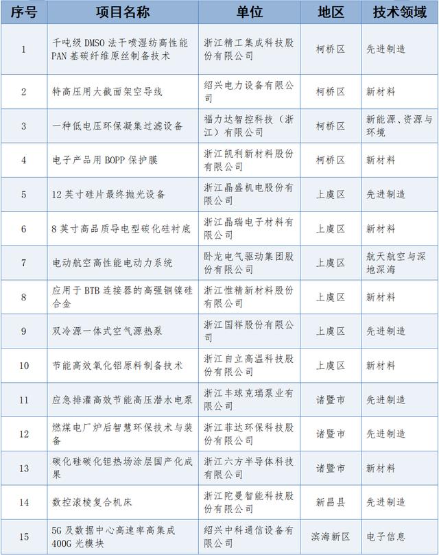 近日,省经信厅公布了2025年浙江省先进技术创新成果评审结果,绍兴市15项成果入选,涵盖先进制造、电子信息、新材料、新能源、航天航空与深地深海等多个关键领域,充分表明了我市科技创新和产业创新深度融合的丰硕成果。
