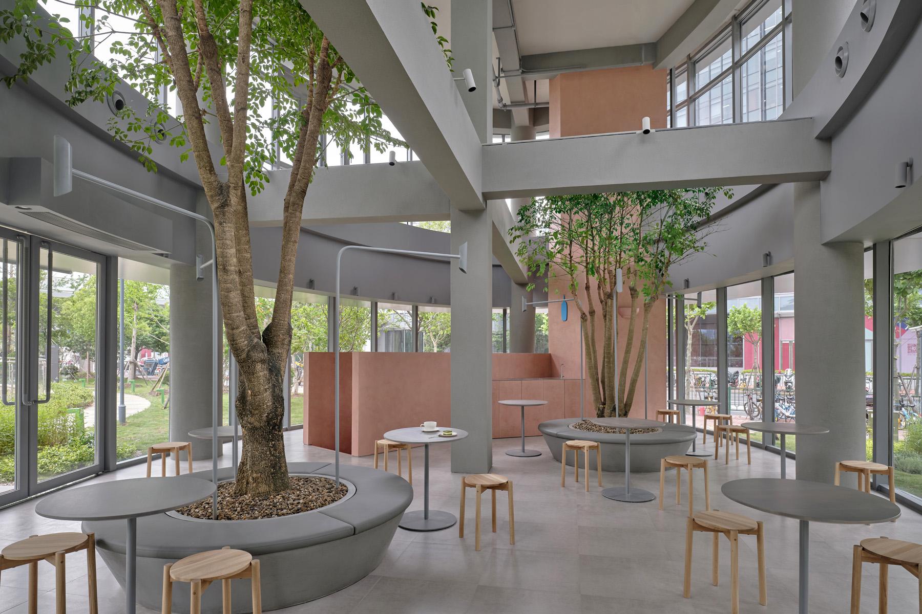 前滩店像一座城市温室,光影、植物与赤土砖统统被纳入空间叙事;