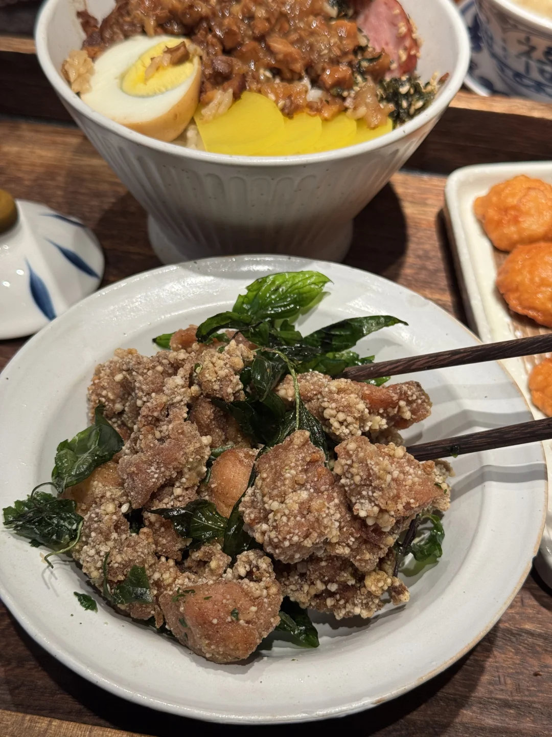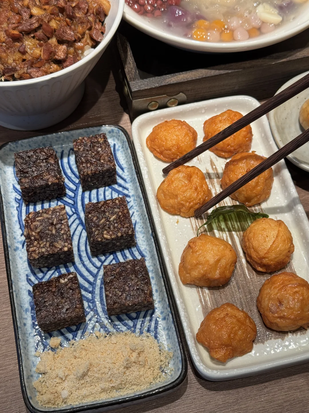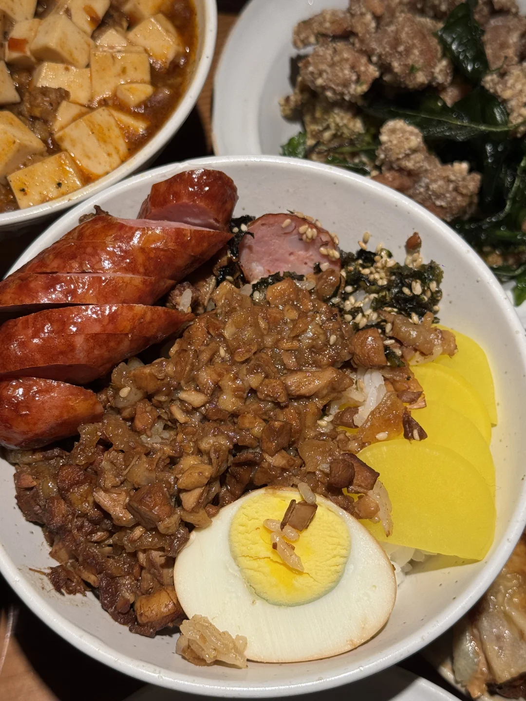 卤肉饭真的好好吃!一大锅现熬肉臊子,浓郁的卤汁,吃一大碗超满足 还有盐酥鸡、大肠包小肠、五香卷、花枝丸…都是台湾特色小吃,好好吃🤤