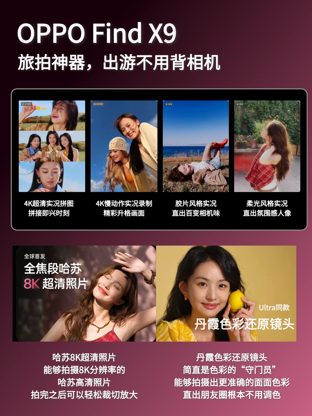 谁懂啊!现在的手机真的卷疯了,出门旅游直接把相机扔在角落吃灰吧! 今年刚入手的 OPPO Find X9,简直就是为我们这种爱拍照的人量身定制的“旅拍神器”!