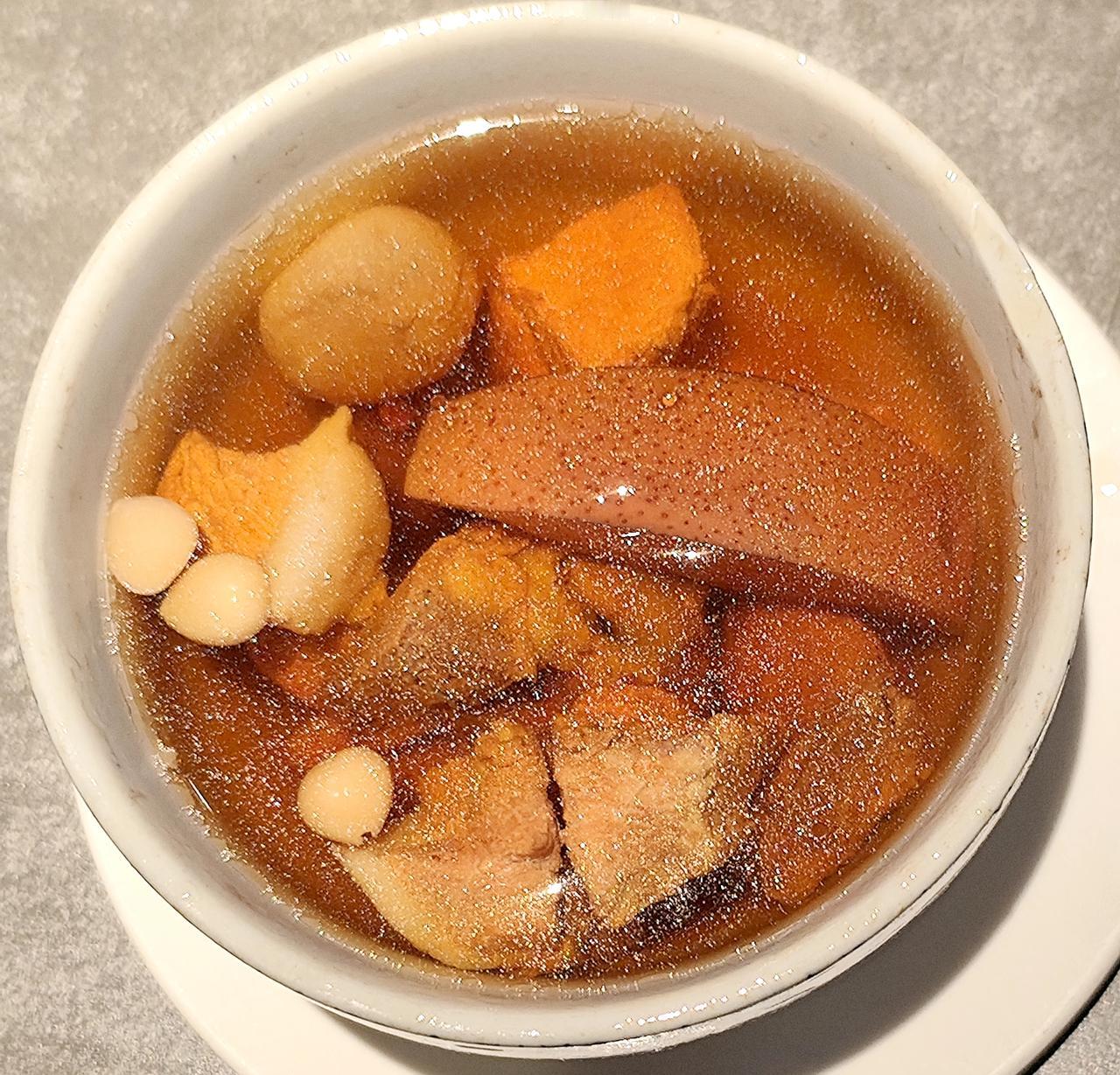 天河区三溪地铁站出来,找到小荔园食午饭,点了一碗炖汤,一碟碌鹅,一碟猪大肠,一碟炒饭,水果是赠送的,没有点青菜,因为我怕酒家的菜洗不干净,要吃菜就自己买,自己煮好了,这个炖汤有杏仁的,适合现在咳嗽的人喝,这个妈子碌鹅,妈子是广州话阿妈的意思,碌鹅是广州话碌来碌去的意思,因为要用酱汁煮鹅,需要不断翻转,这个碌鹅不属于清淡菜,吃的就是酱汁的味道,碟子下面有酸菜垫底的,猪大肠,我最怕弄不干净,所以我从来不买,但是酒家的师傅应该可以弄干净吧?猪大肠也是有酱汁的,碟子下面也是有酸菜的,还有一碟炒饭也可以,我打包了猪大肠和碌鹅带回家,等下午煮晚饭的时候加一碟青菜就好了。好了今天我的美食日记完成了,下次再说吧!