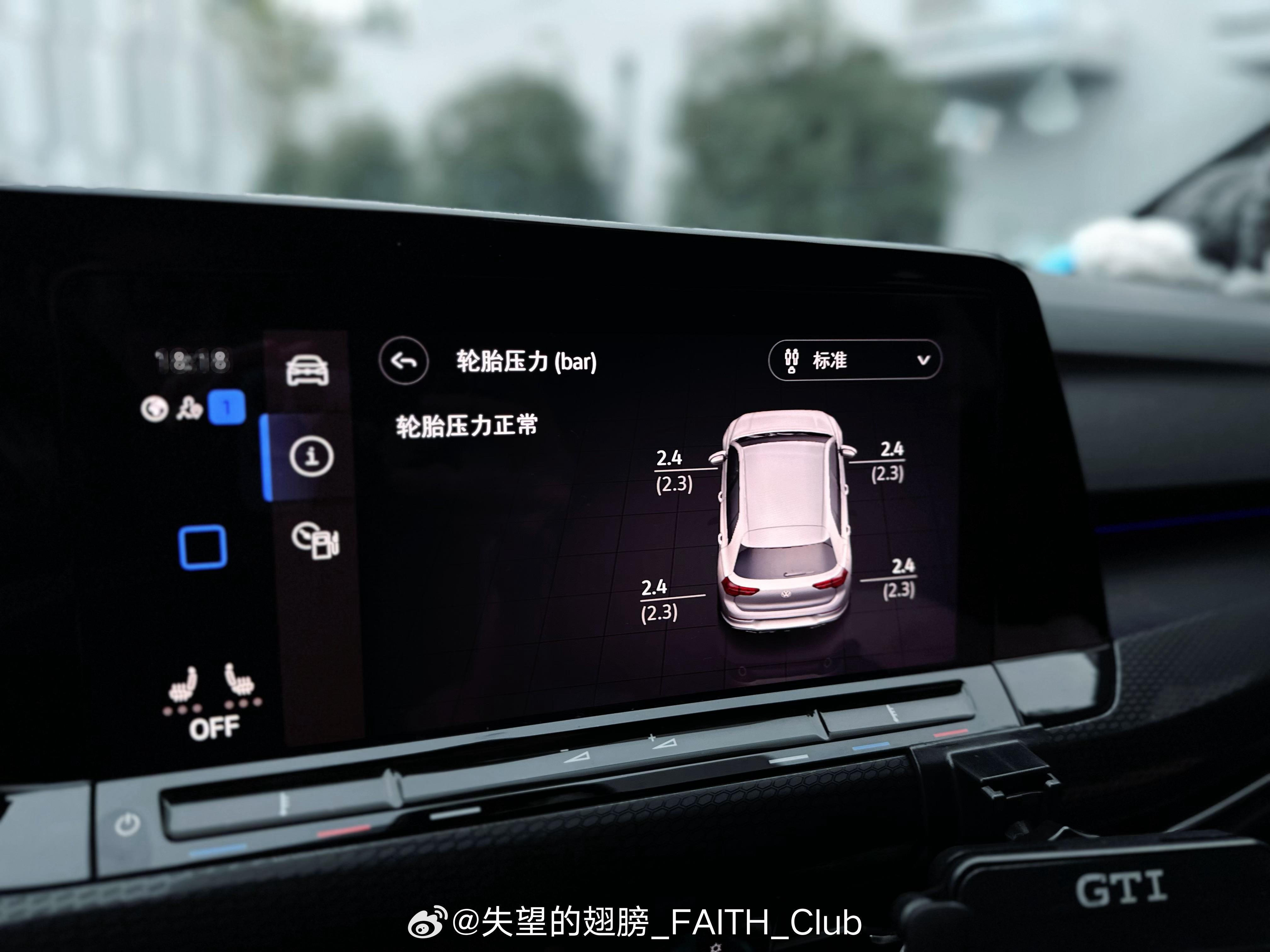 高尔夫8代GTI:原厂二代胎压显示,开通隐藏功能布局。高尔夫gti汽车改装成都同