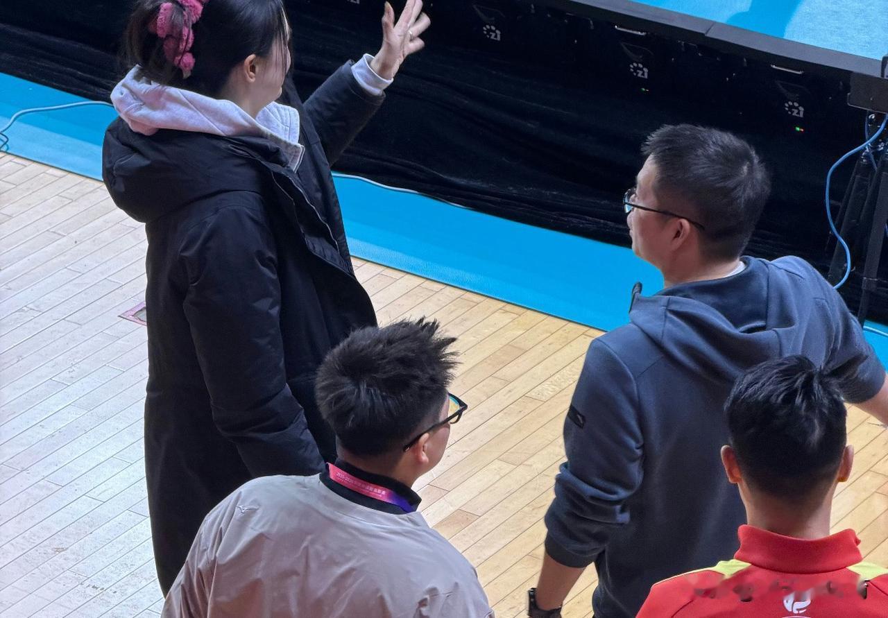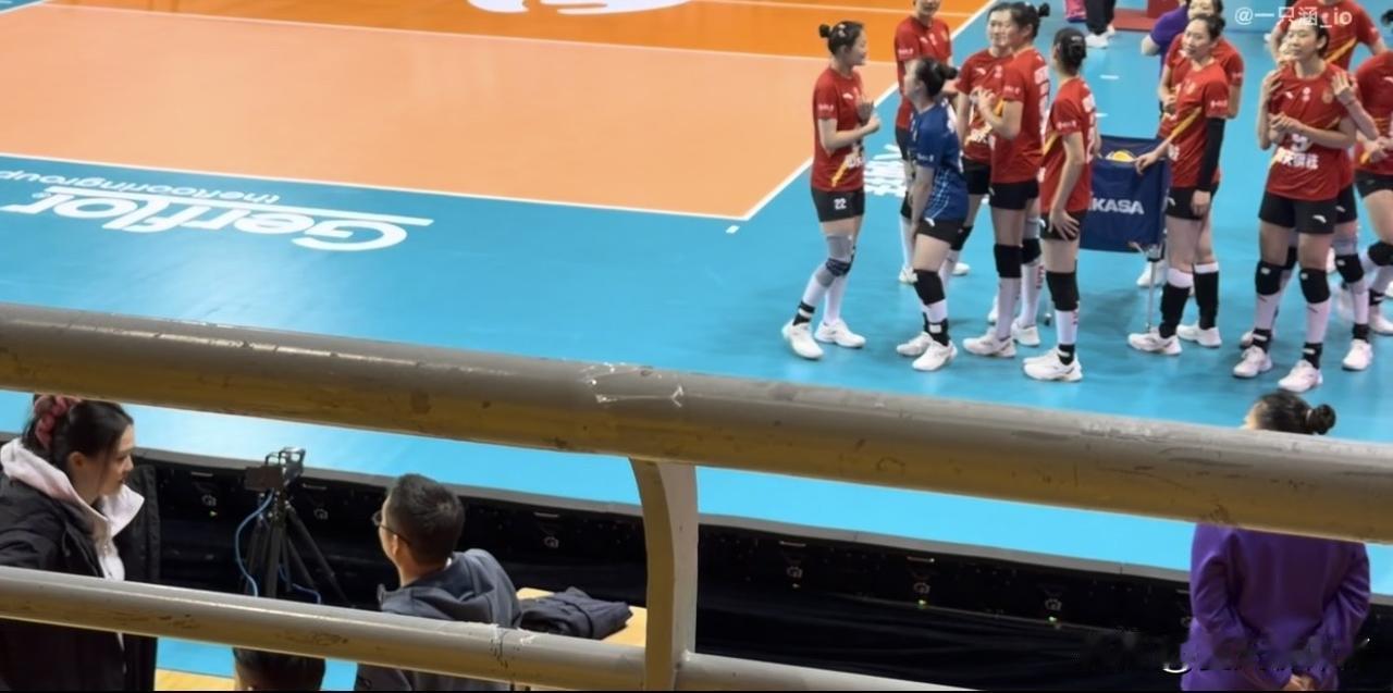 张常宁探班江苏女排!今天下午在常州体育馆,江苏女排的主场,宝宝张常宁穿着黑色长款羽绒服,前来观看江苏女排的比赛,赛前江苏队在热身,妹妹们看到姐姐张常宁来了,立马放下手中的球,去跟张常宁打招呼!张常宁今天在看台上看了这场比赛,估计就想立刻复出上场跟小吴队长打对角主攻线!