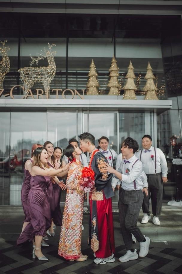 【On.cc】容天佑小登科娶珠寶太子女 爆契媽麥玲玲人情成本運程書咁厚無綫小生容天佑日前他迎娶拍拖8年的富家女扶天恩(Winnie),並在五星級酒店筵開23席,邀請多位圈中前輩及好友出席,李司棋、麥玲玲、陳展鵬、尹揚明、鄭丹瑞、朱晨麗、張頴康、崔建邦、何依婷、張彥博、翟威廉及焦浩軒都有去飲,星光熠熠。被問道向來以豪爽見稱堪輿學家麥玲玲封多少人情,容天佑透露自己因為《法言人》與麥玲玲結緣:「因為佢好錫我,所以由戲內叫佢做契媽,去到戲外都係叫契媽。年頭上佢節目《玲玲有情報》話我今年有喜事,問我有無打算結婚?當時都未有打算,過多年先,點知過左無幾耐,就心血來潮求左婚。(封咗幾多人情?)叫得契媽,人情當然唔會細,幾多就唔講啦,不過封人情就真係同佢本運程書差唔多厚。」至於視帝陳展鵬,容天佑稱:「展鵬就真係唔話得,佢真係非常忙,一直都預佢來唔到,點知突然間有個人搭住我,大個仔啦,恭喜哂。望清先知係展鵬,佢啱啱收工,立即趕過來,佢話人生大事,點都要見下我哋兩公婆。知道佢非常忙,要開工之餘又要照顧屋企人,都咁錫我哋,感動之餘,佢亦係我學習對象,事業同家庭都兼顧得好好。」容天佑娶Winnie,抱得美人歸。爆麥玲玲封人情超厚。百年好合呀!婚宴場面曝光。好似Party咁!陳展鵬百忙抽空出席。窠好幸福。齊齊去飲。