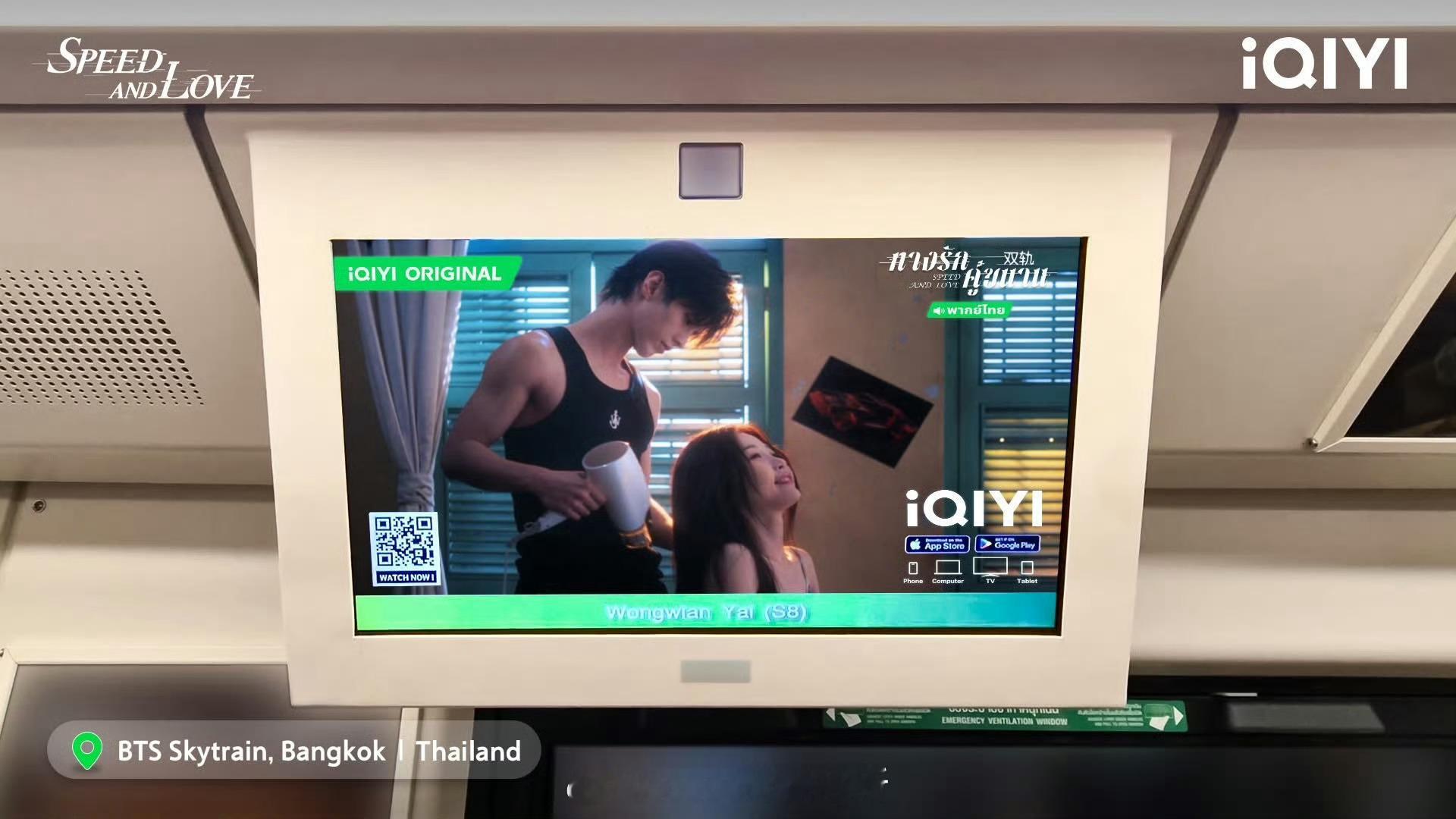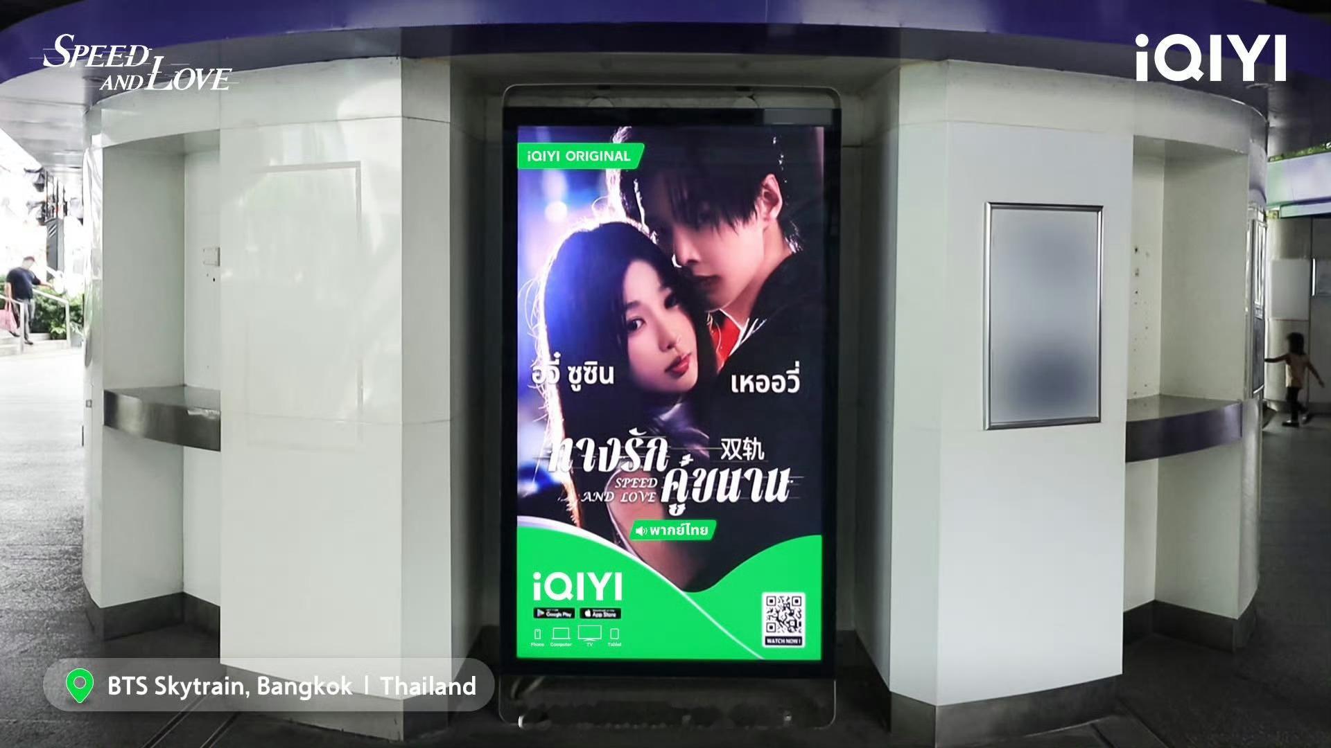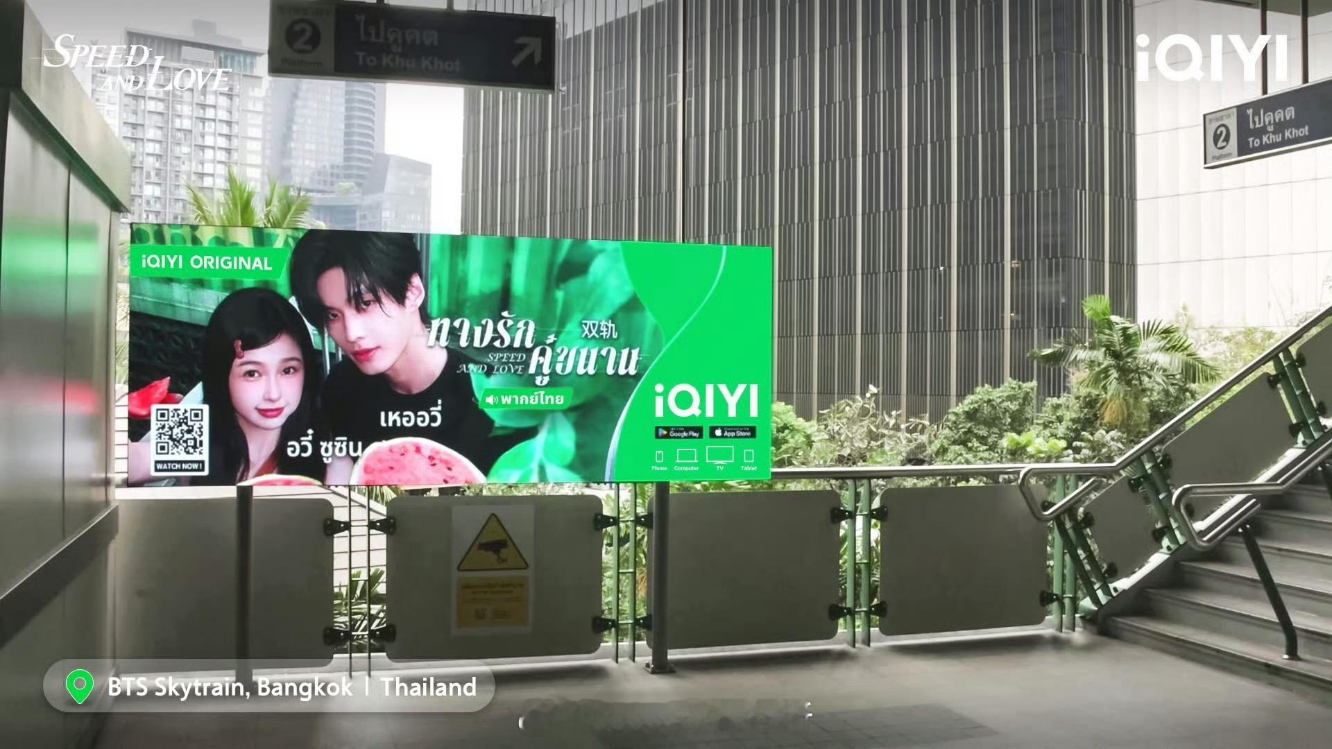 爱奇艺国际版泰国站为虞书欣 何与双轨在泰国曼谷BTS云轨站台铺放广告