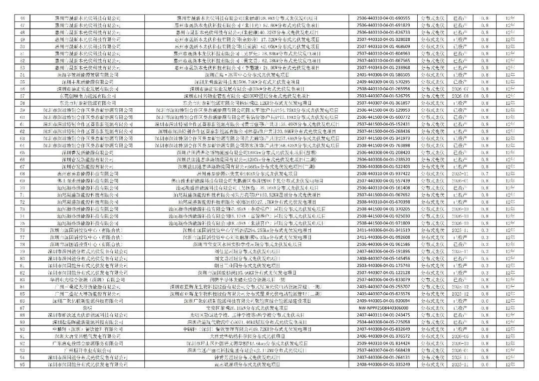 (完整项目清单请前往广东电力交易中心官网查看)