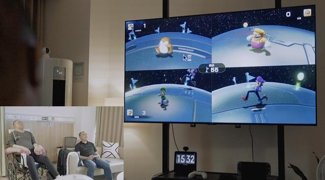 脑虎科技创始人兼首席科学家陶虎(右)与患者(通过脑机接口意念控制)游戏对战