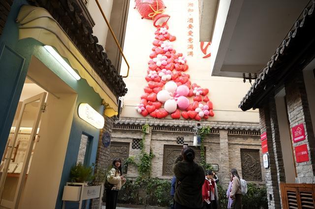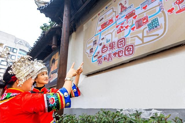 而随着启动仪式的开启,白果园街区又增添了诸多新的浪漫元素,更好地宣传新型婚育文化。湘遇之门、桃花角、用不同语言写出的“我爱你”墙、“jiu”要爱意满满、月老办事处、十二时辰插画墙等创意设计,形成“相遇-相知-相守”的情感叙事闭环。街坊、游客、创业者们都感受到了街区的新变化,纷纷驻足打卡。