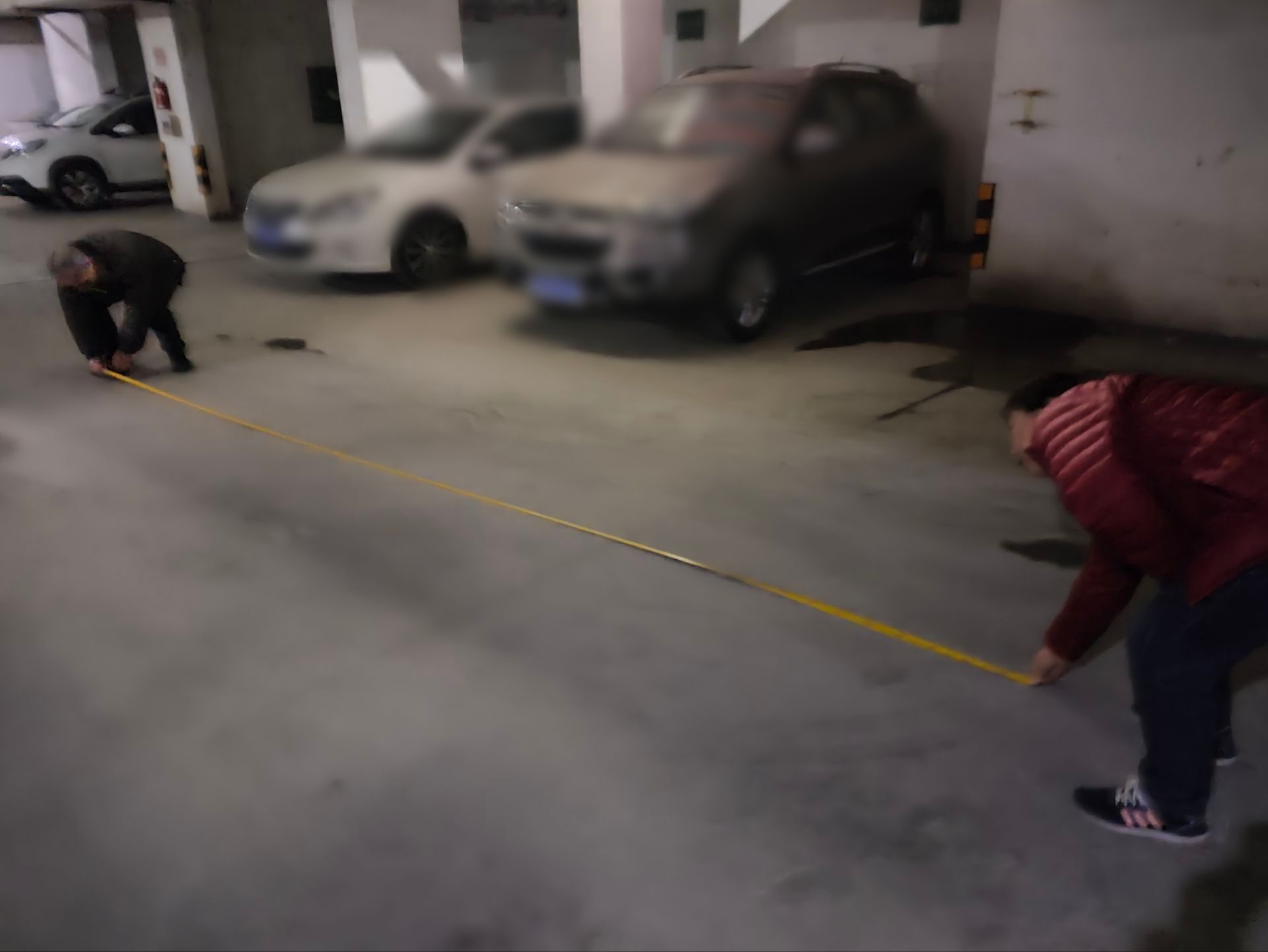 干先生给大皖新闻记者测量当时的车辆拖拽痕迹。(资料图)