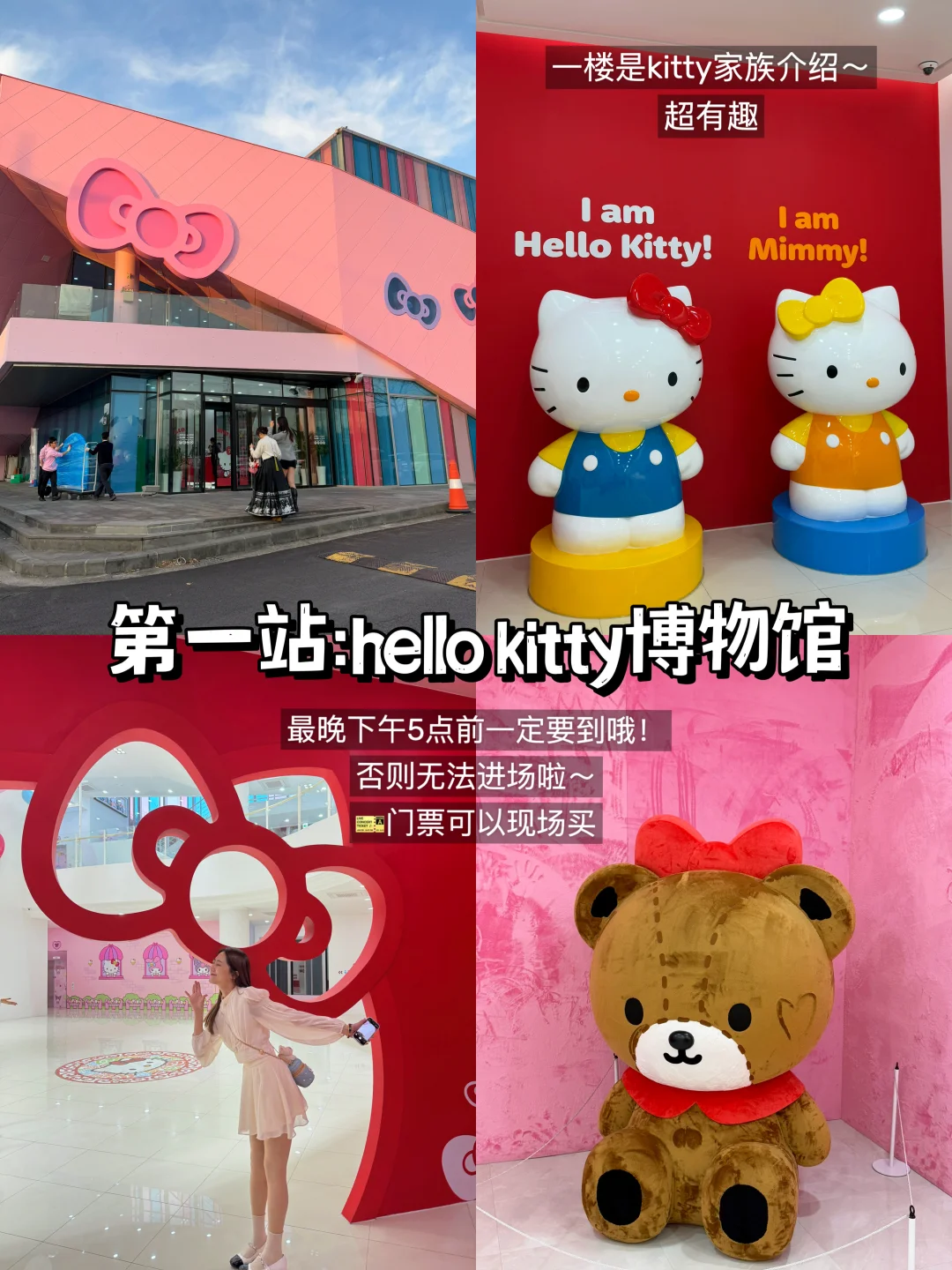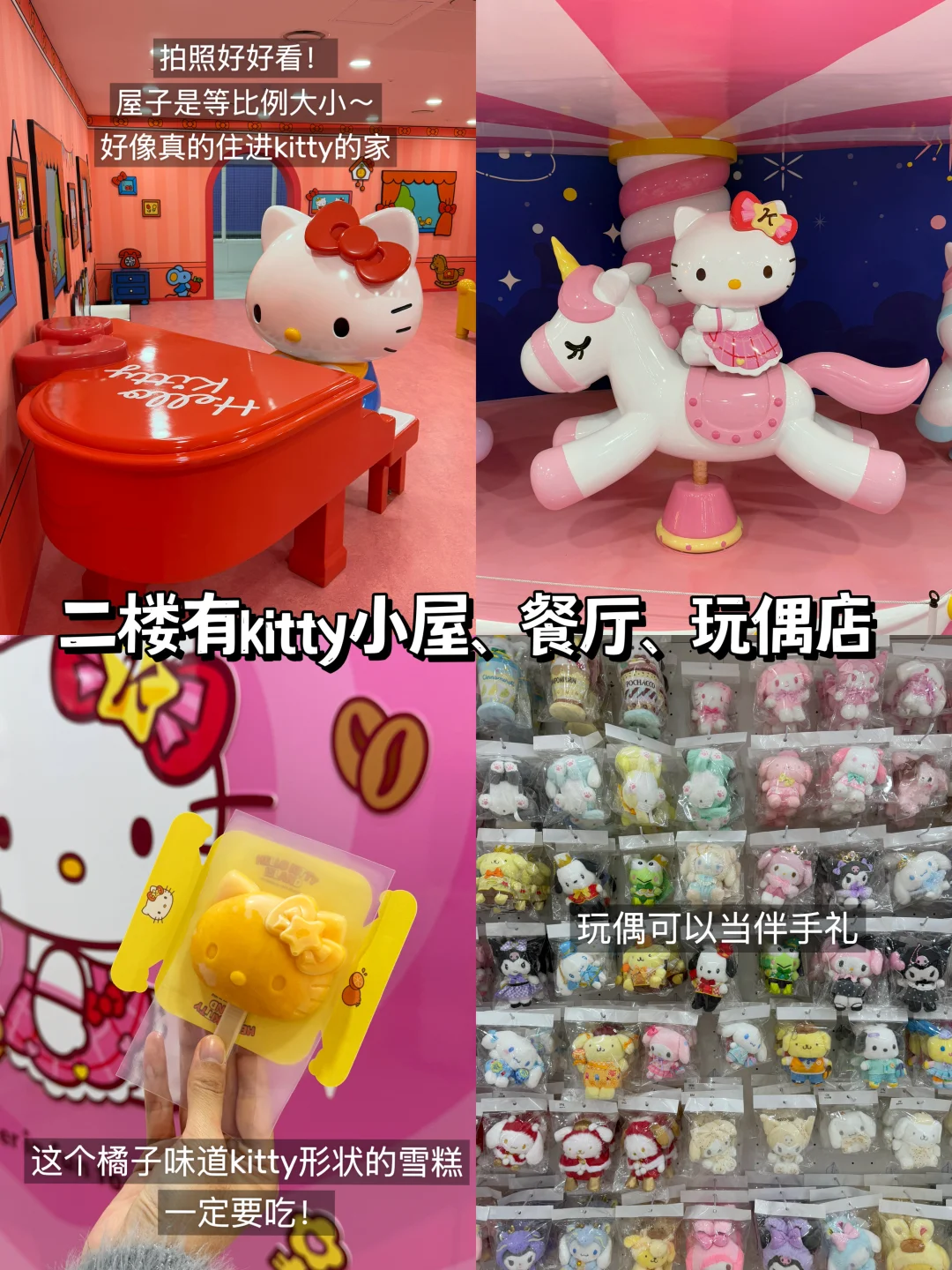入口巨型Kitty记得拍照打卡!1层展厅有kitty家族介绍,kitty客厅、厨房卧室,还有很多其他三丽鸥主题的装饰,二楼是Kitty画展🖼️还有粉色系甜点店🍧