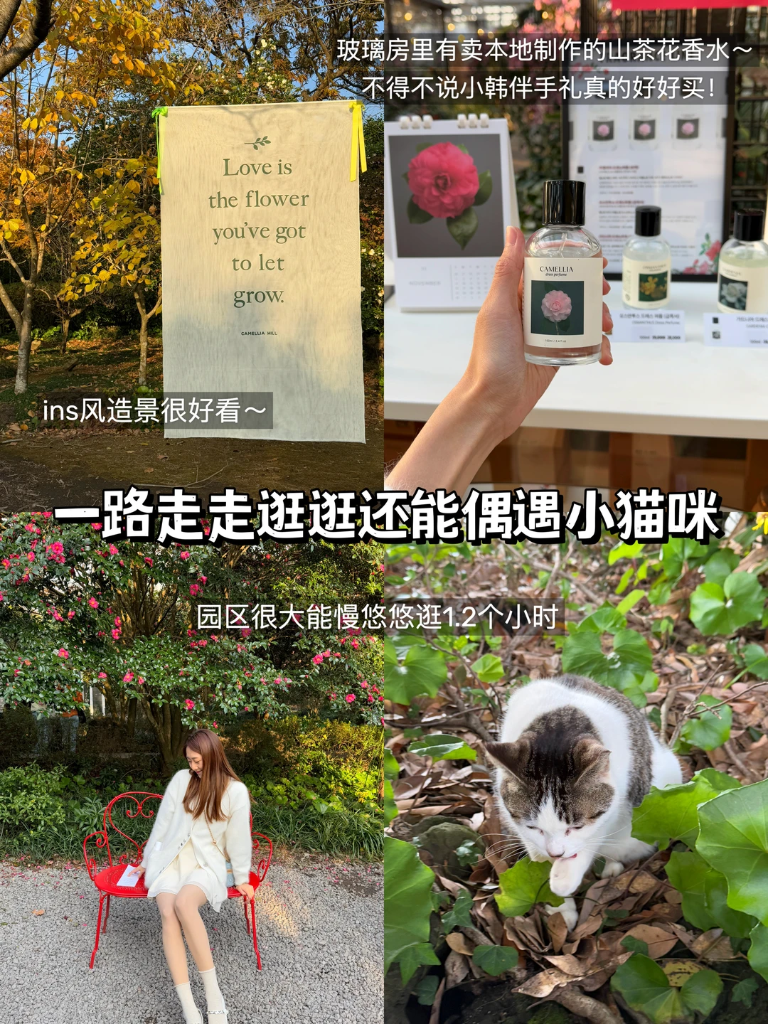 超大的山茶花🌷花园可以逛1-2个小时,白色玻璃房、四季花径都超好拍,园区还会把每个拍照点位都标注出来,可以穿浅色亮色衣服拍照更好看!还可以买到各种山茶花/橘子系列伴手礼哦