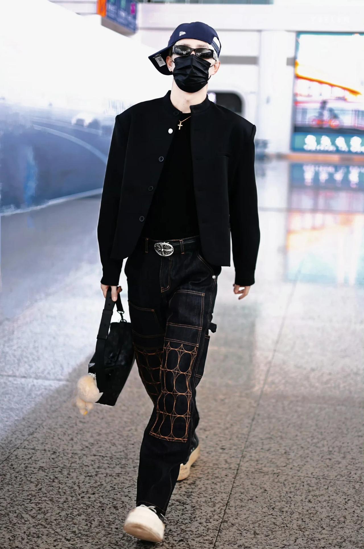 鹭卓1129|鹭老师的潮男机场称霸秀来了 鹭卓也太瘦了吧现在!穿allblack