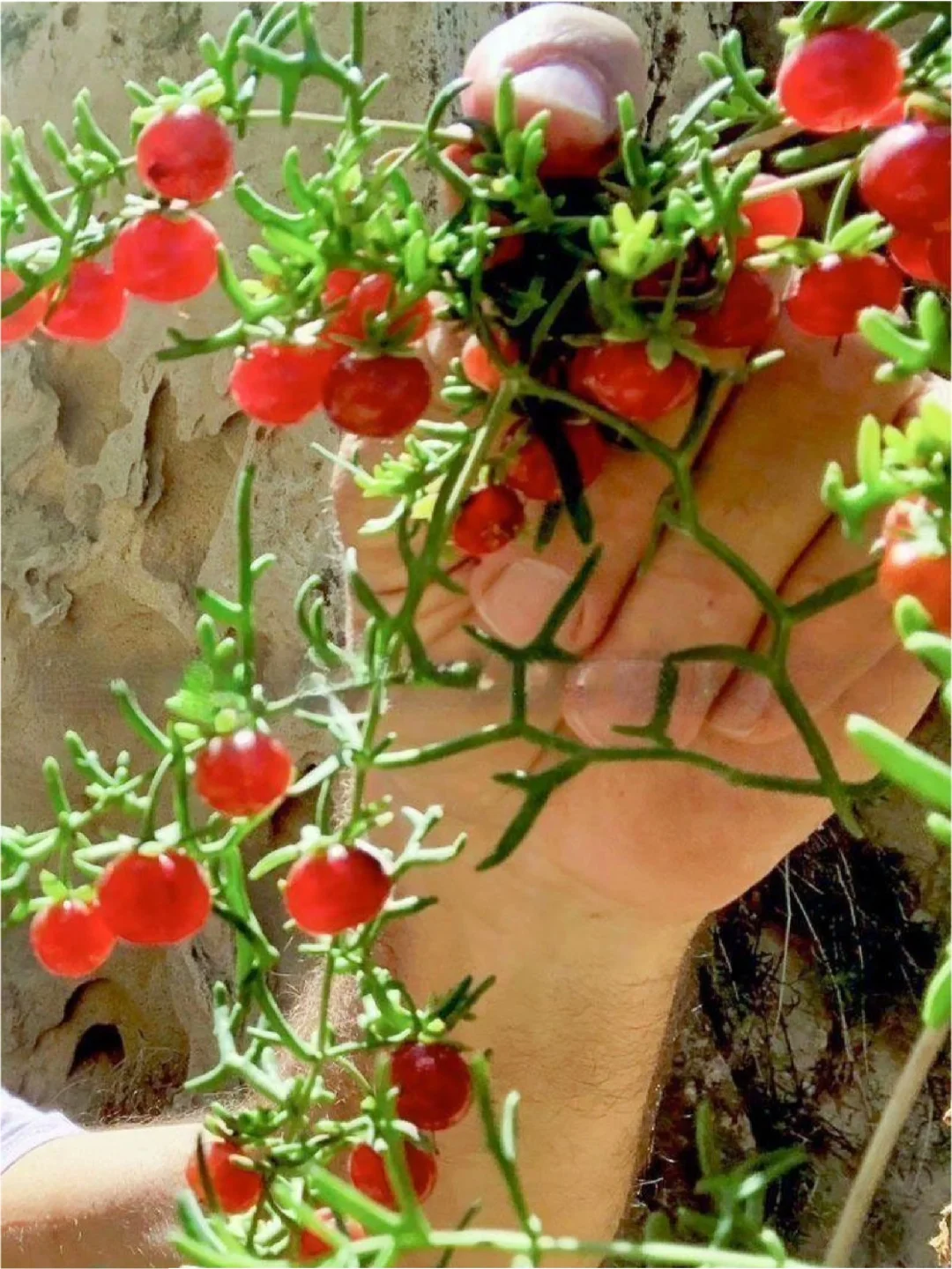 一种常绿植物,非常罕见且美丽,蔓生或匍匐矮子灌木分支的茎和深深浅裂、薄而多汁的叶子。不显眼的黄绿色花s之后是球状的鲜红色果实,直径约1厘米。这些水果可食用,甜美可口。黑果马拉考果树广泛分布于土库曼斯坦、乌兹别克斯坦和伊朗至阿富汗,但仅在砾石、岩石斜坡上的小种群中已知,通常在石膏土上。它最适合夏季炎热干燥、冬季严寒的气候。尽管水果爱好者非常追捧它,但它在栽培方面并不为人所知