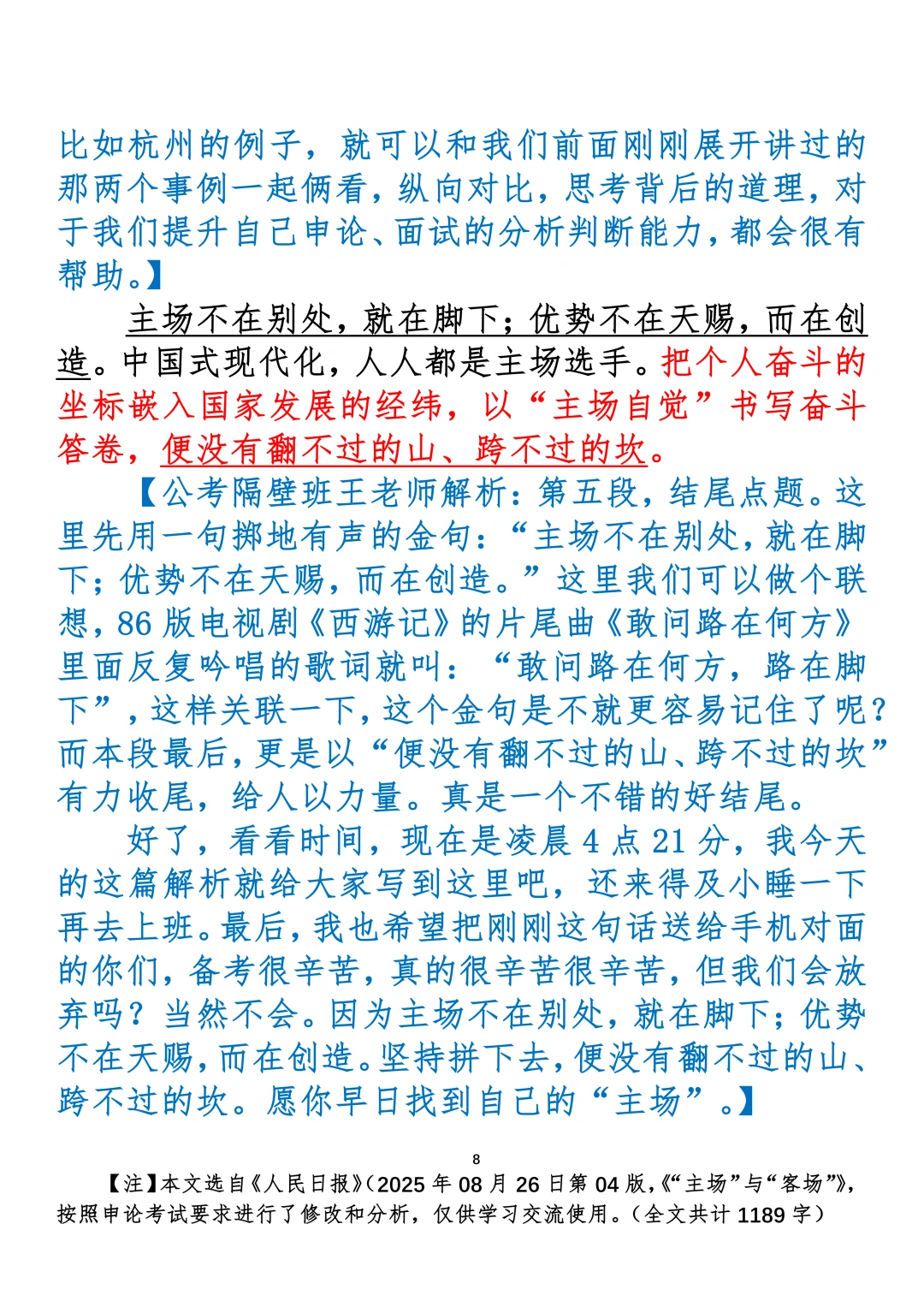 如何抄写:每日抄写文章发在“公考隔壁班王老师”账号,红色字是重点句和结构句,黑色字是正文,蓝色字是解析,大家抄写时不必抄蓝色字。建议先通读全文,做到心中有数再开始抄写,效果会更好。 关于文章:抄写文章来源于人民日报,但每篇文章我都根据申论考试要求进行了修改:一是重写或修改开头、结尾;二是统一段首句句式结构;三是调整段落字数,使文章结构更均衡;四是简化复杂长难句,使之更具可模仿性。每篇文章无论修改多少,都是基于申论考试要求,毫无对人民日报文章品评之意。(此处致敬人民日报)