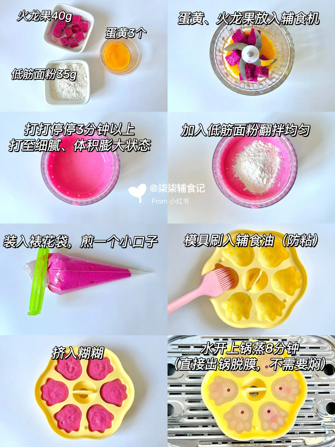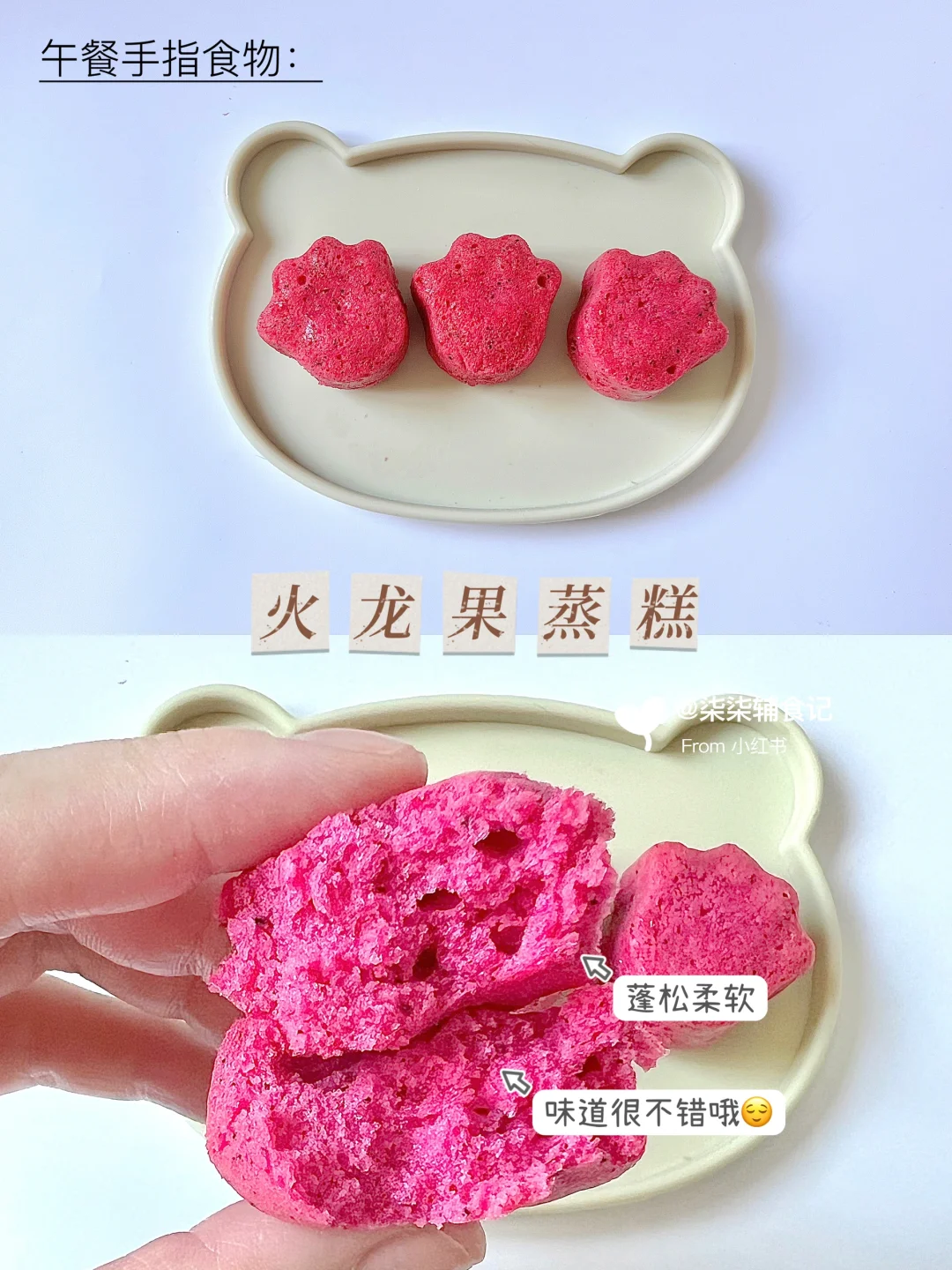 火龙果蒸糕,这个配方版本,蒸出来是蓬松暄软的,喜欢吃湿软的可以蒸20分钟焖5分钟,出锅就是湿湿软软,不过颜色可能会变,蒸太久颜色就没有办法这么鲜艳。
