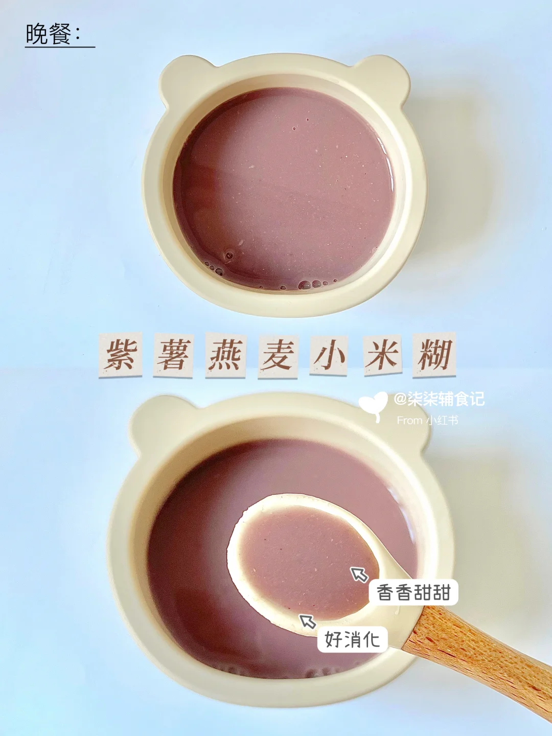 晚餐紫薯燕麦小米糊,香香甜甜的哦,很好喝,快get起来给宝宝做吧~