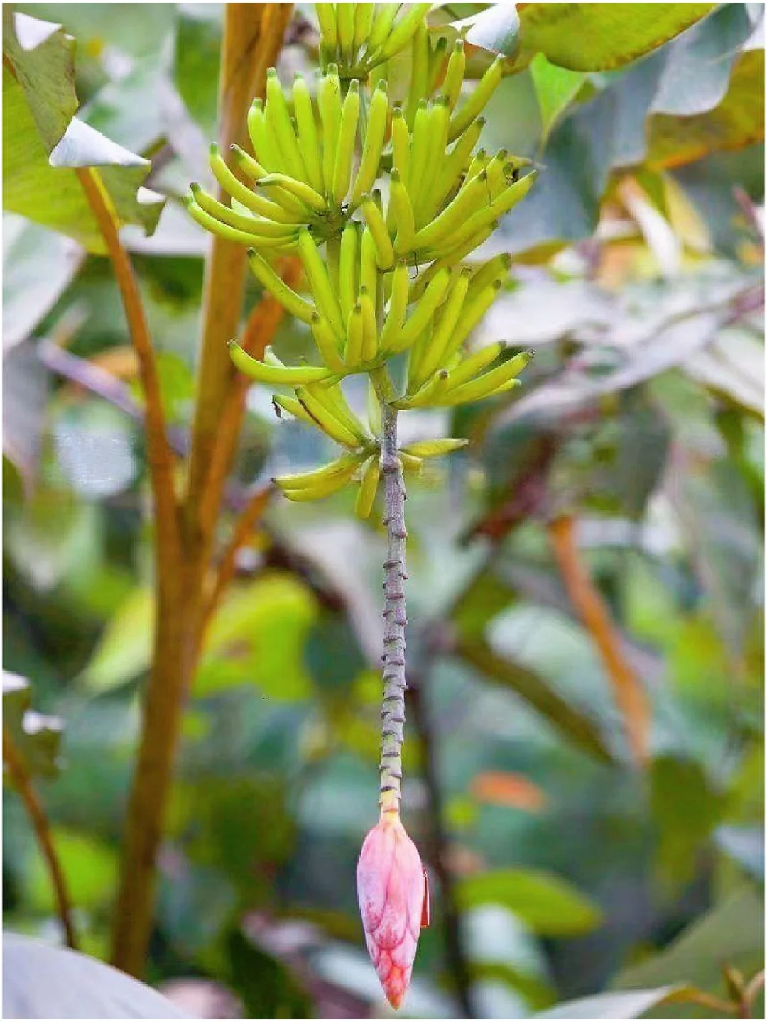 一种长着红紫色的细长小香蕉 假茎s和狭窄下垂的叶子,下侧有明亮的蜡白色。细长的花序有桔红色的苞片,带蓝色蜡质色调和绿色花其次是指状的黄色果实,种子很小,直径只有1.5毫米。Musa lawitiensis原产于婆罗洲,生长在低海拔和中海拔的河岸等受干扰的地方。它最适合在热带条件下种植,但实际上它仍然是未知的。 近年来因为原产地环境遭到破坏,它的处境正令人担忧。