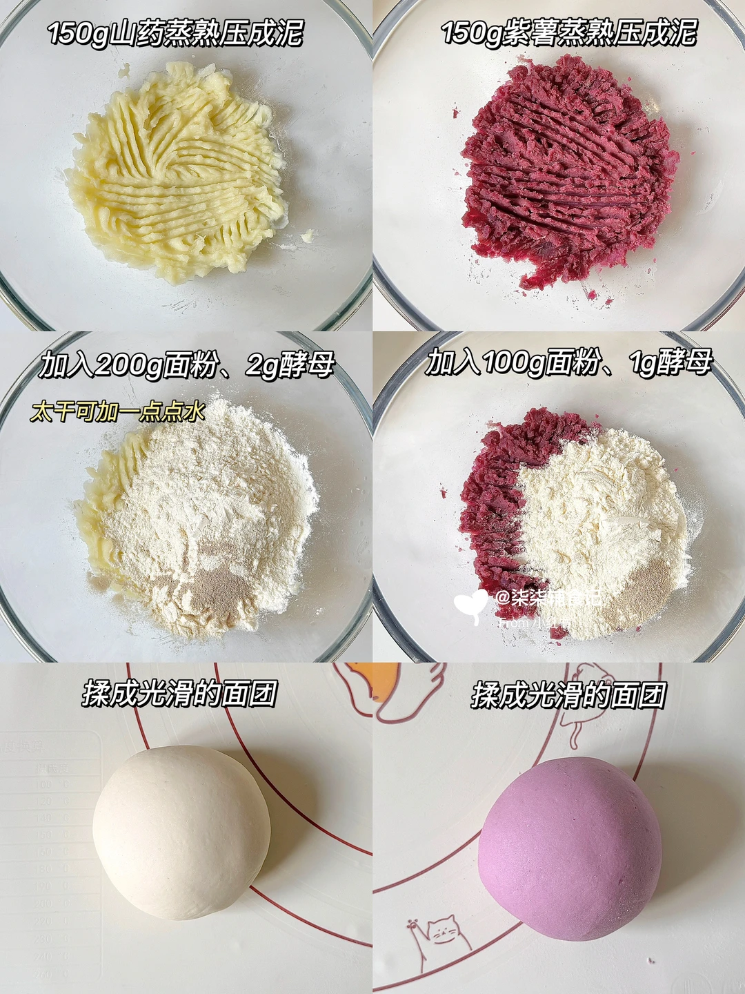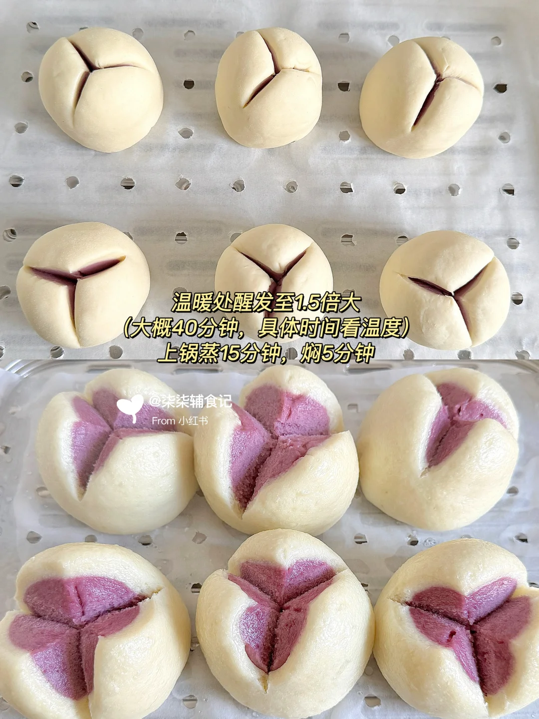 干净碳水最养脾胃啦 今天早餐给柒柒做了紫薯山药开花馒头🌼 用紫薯山药和面,把营养都揉进去啦~健脾养胃,膳食纤维拉满‼️好看又好吃😋 搭配一碗热乎乎的暖胃菠菜牛肉粥,开启元气满满的一天~ 🛒紫薯山药开花馒头食材: 山药面团:面粉200g、酵母2g、山药150g 紫薯面团:面团100g、酵母1g、紫薯150g 🛒菠菜牛肉粥:菠菜、牛肉、胡萝卜、香菇 ‼️具体制作过程看上图👆 ✅食材蒸熟一定要倒掉碗里的水份 ✅由于面粉吸收性不同,可以适量调节