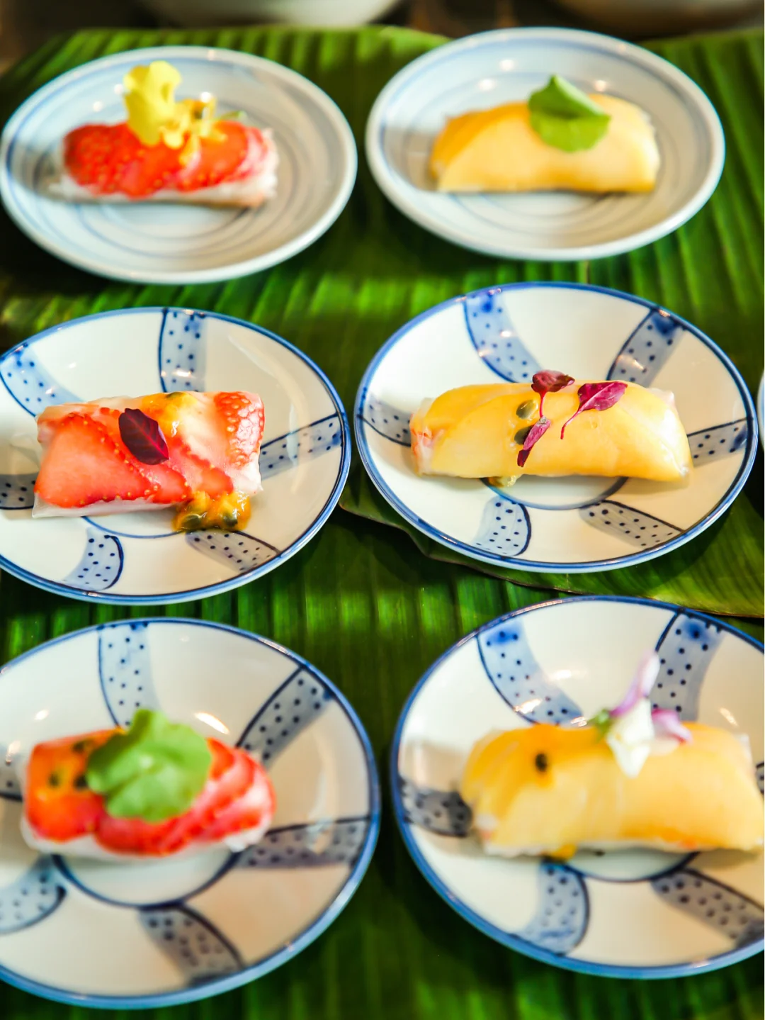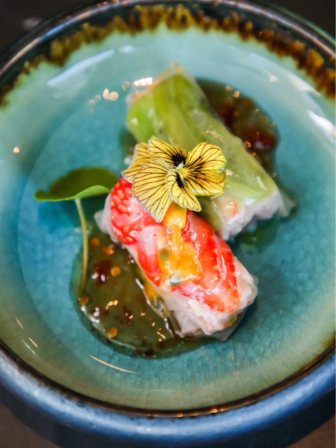 🟡深圳益田威斯汀酒店行政总厨马捷将鱼子酱和水果融合在春卷之中,【帝王蟹鱼子酱水果春卷】鲜香果甜,独具一格。