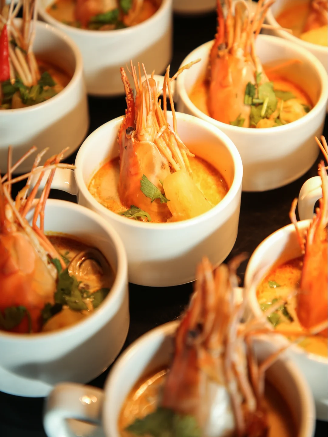🟡彭年万丽酒店派出马来西亚大厨,烹饪了马来传统【槟城虾面】🦐,用精选虾壳熬制高汤加以新鲜排骨提鲜直激宾客味蕾😋【嘛嘛档咖喱羊肉】东南亚异域风情
