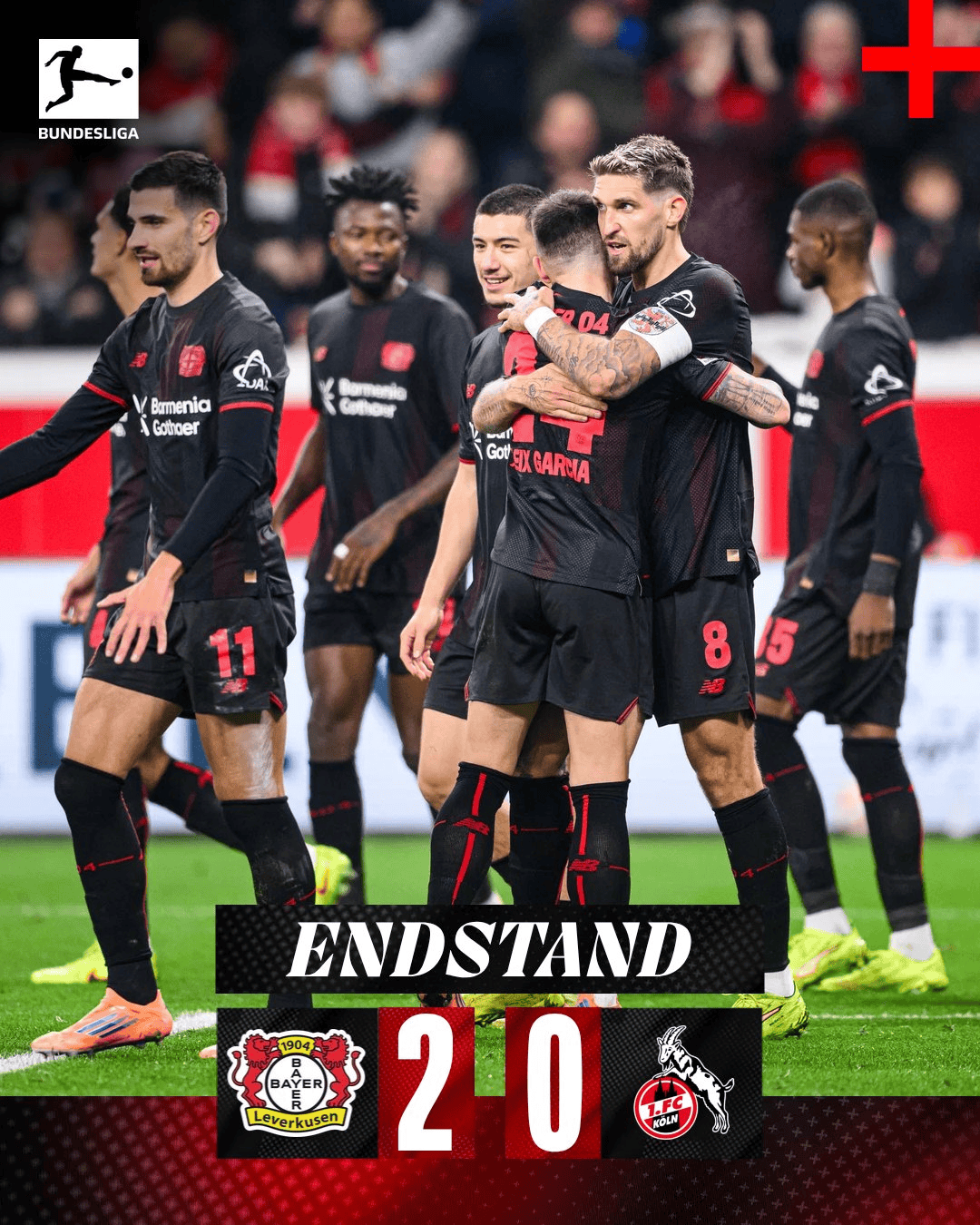 虎扑12月14日讯在刚刚结束的一场德甲第14轮的比赛中,勒沃库森坐镇主场,2-0击败了来访的科隆。