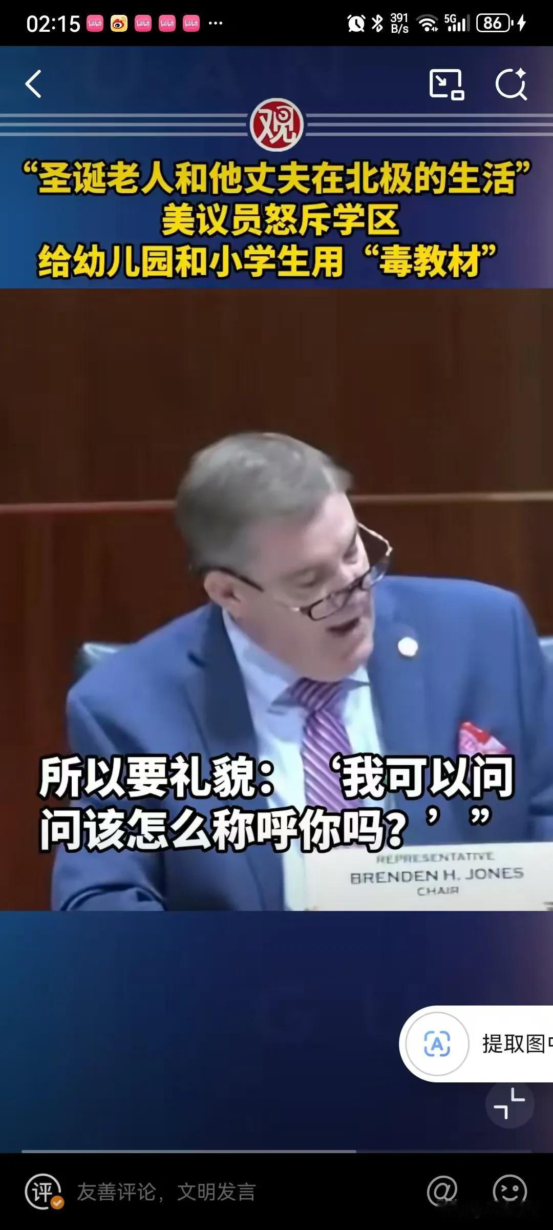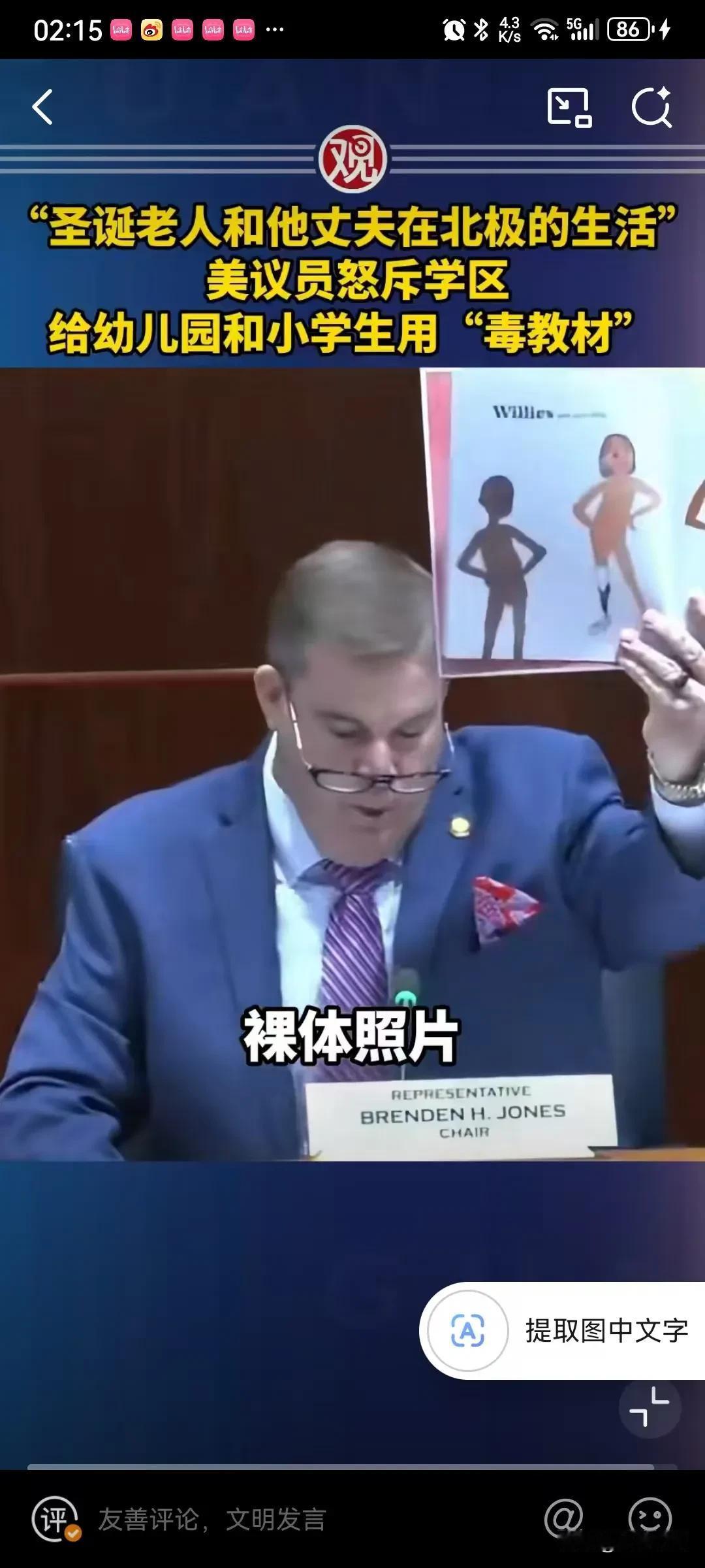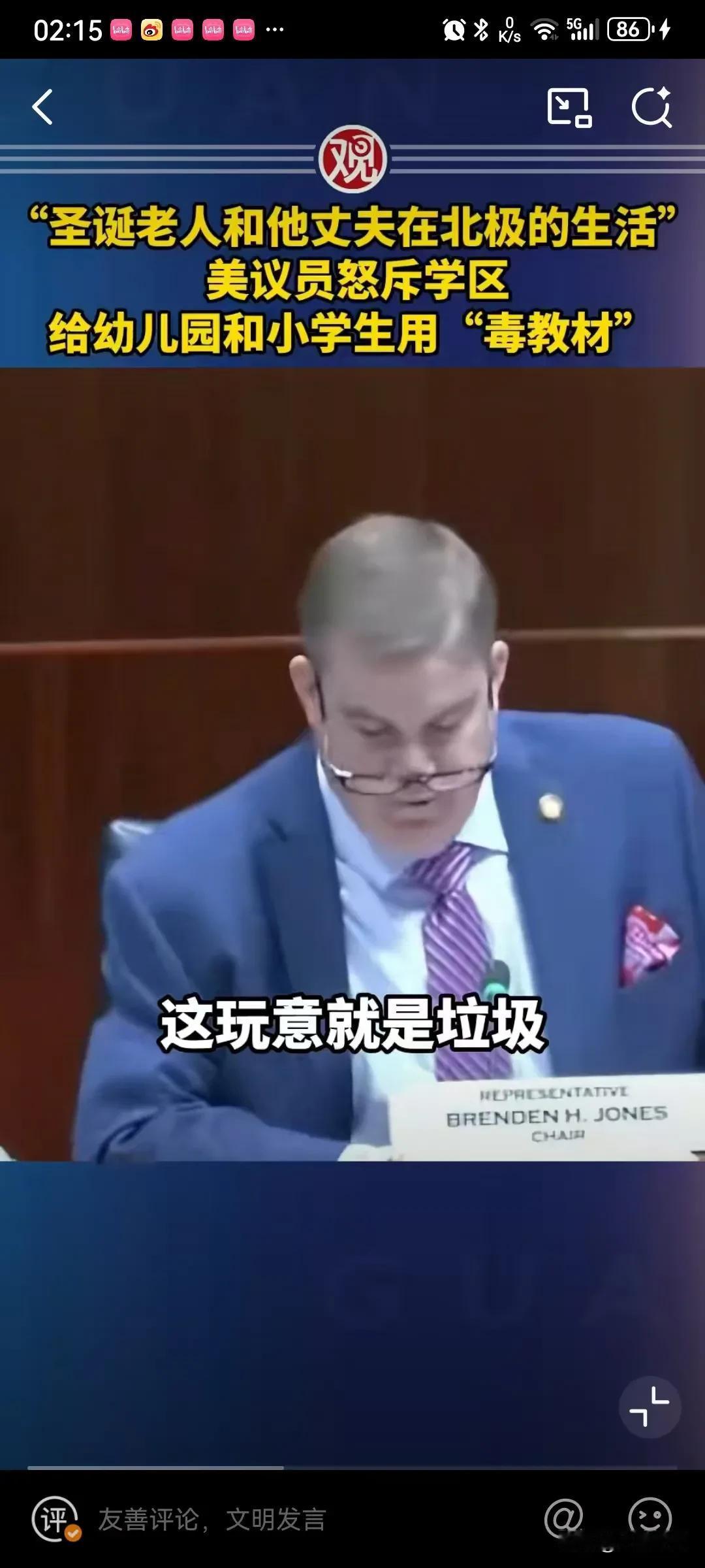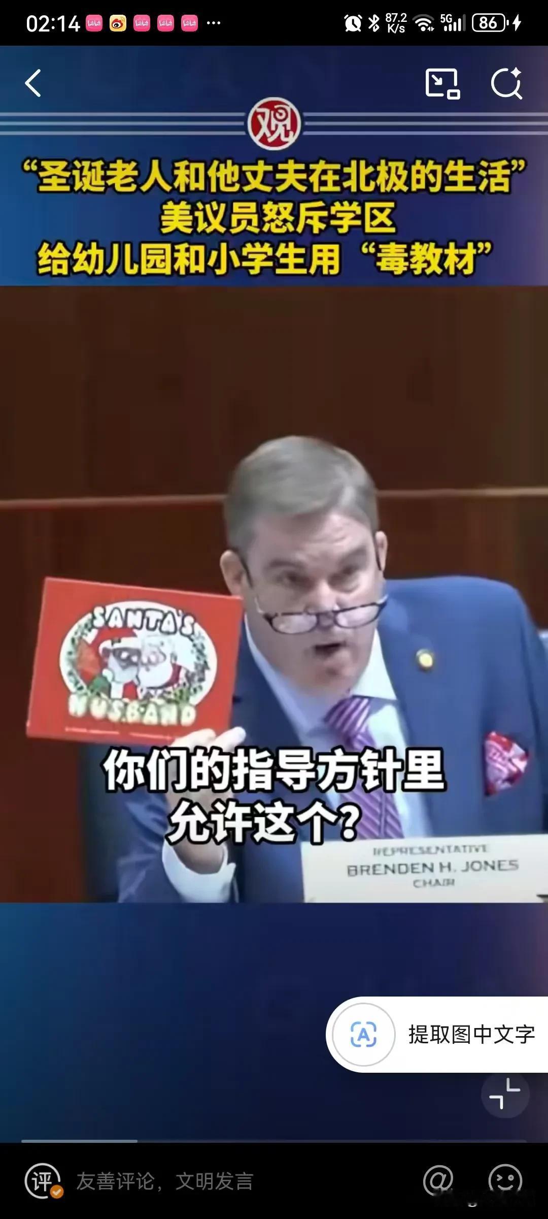美国也有毒教材,美国议员发现幼儿园和小学存在大量毒教材,什么《圣诞老人的丈夫》,讲述圣诞老人和它的丈夫在北极的生活,还有各种性别自由选择的书,甚至给四岁的幼儿园学生看含有裸体书,教幼儿园学生说小孩裸奔不粗鲁,让这个美国议员都抓狂了,直言这些书就是垃圾! 其实这是美国白左化的后果,这些白左的群体从教育切入,就是从小培养美国学生接受它们那套荒唐的白左思想,虽然川普上来有所清楚,但是之前已经渗透得太深了,一时半会也清楚不干净,我们这边真的要吸取这种教训!
