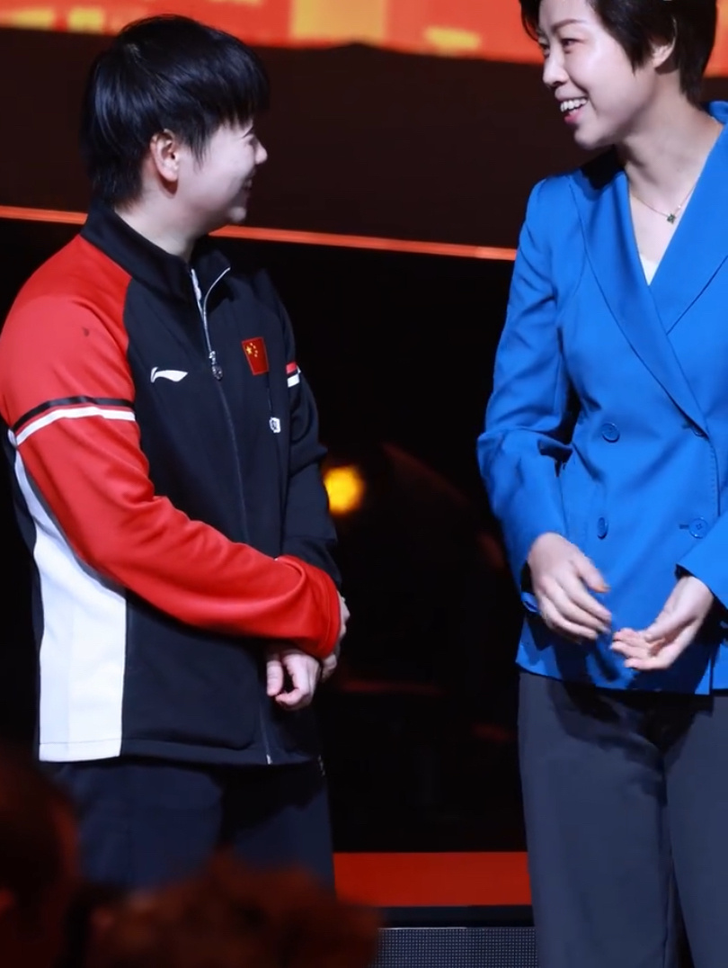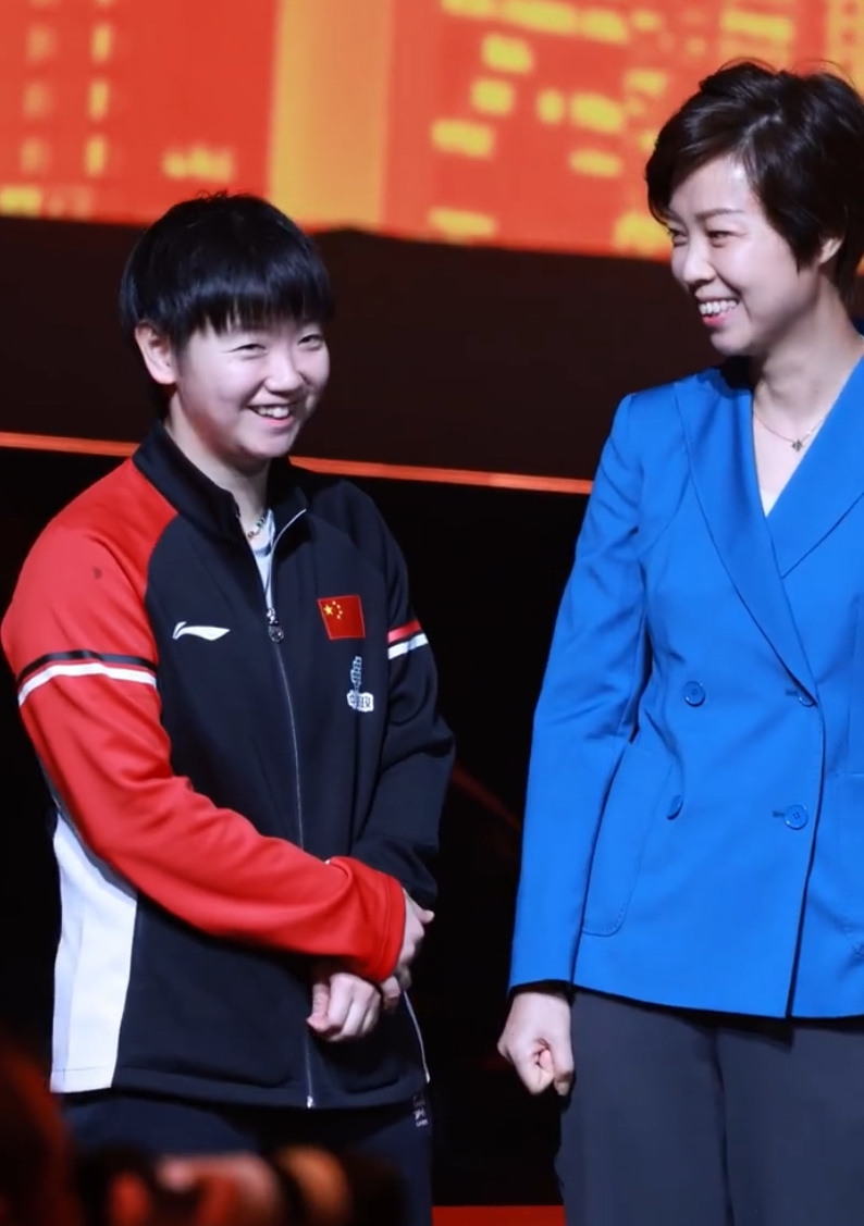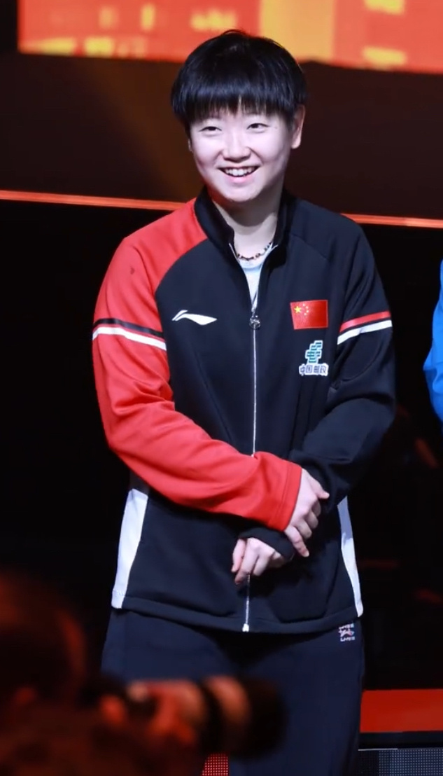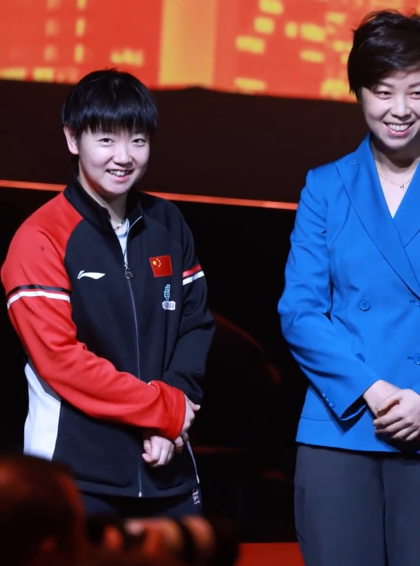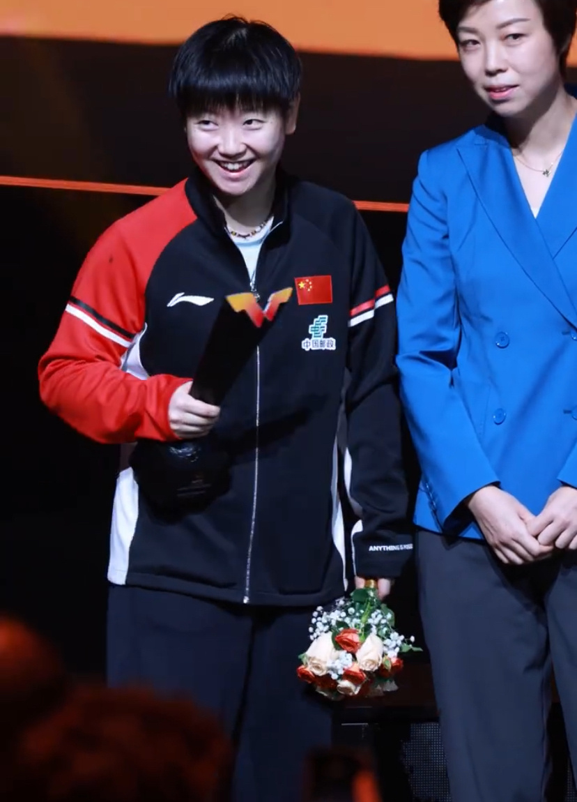 恭喜孙颖莎/王楚钦拿到混双亚军,莎莎一看亚军是大魔王张怡宁颁发奖杯,立刻笑没了眼