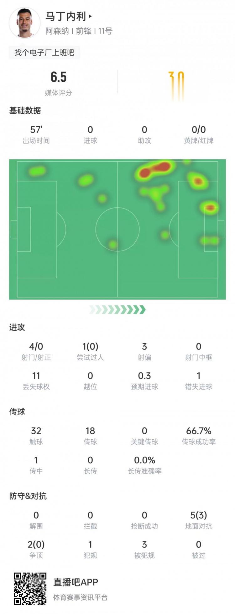 直播吧12月14日讯英超第16轮比赛,马丁内利第57分钟被换下,目前阿森纳0-0狼队。