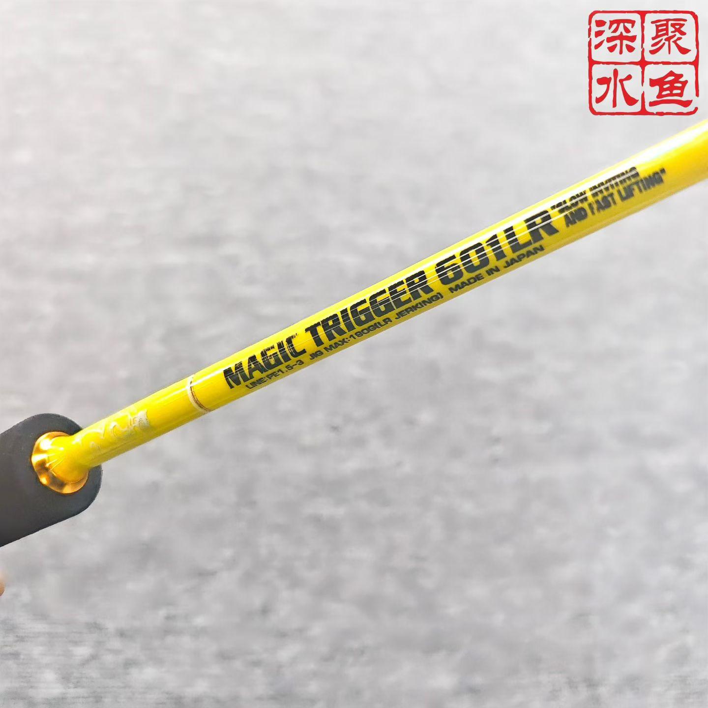 MC WORKS' 鹅黄限定款直柄铁板杆。MC WORKS' MAGIC TRIGGER 601LR 鹅黄配色、分段式EVA手柄、艺妓标 限定款直柄铁板杆 长度:6ft(1800㎜) 饵重:~190g PE:1.5-3 抛投型一流 高感度,低回弹,超强韧性兼顾于超级轻铁(SLJ)以及150g内铁板作钓
