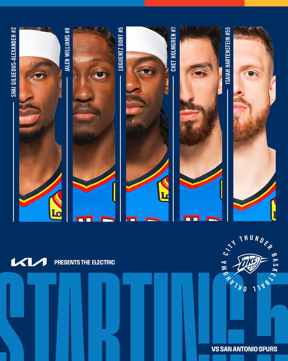 雷霆队报道。今晚的首发五人阵容。@KiaElectricStartingLineups