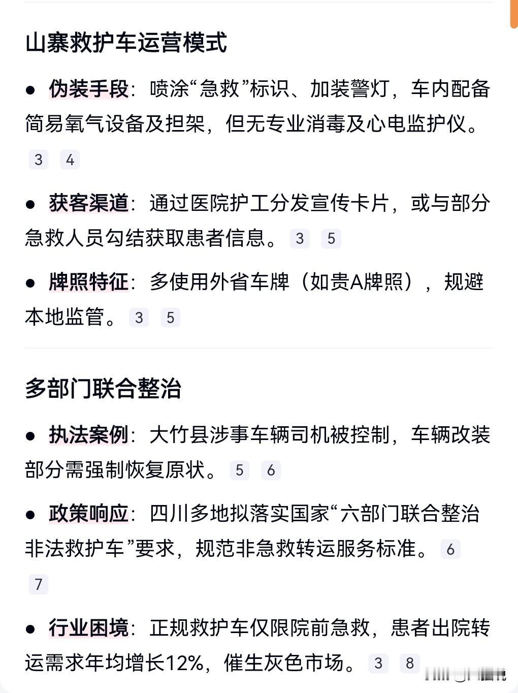 这真的是很细思极恐啊!这跟黑车有什么两样啊? 要价那么高。 “山寨救护车”在四川多地现身。所以当地一定要查起来呀,严惩啊。 有个司机都已经被控制起来了。 不过也要从根本上解决问题要,要让人们能够及时的能够有救护车可用。